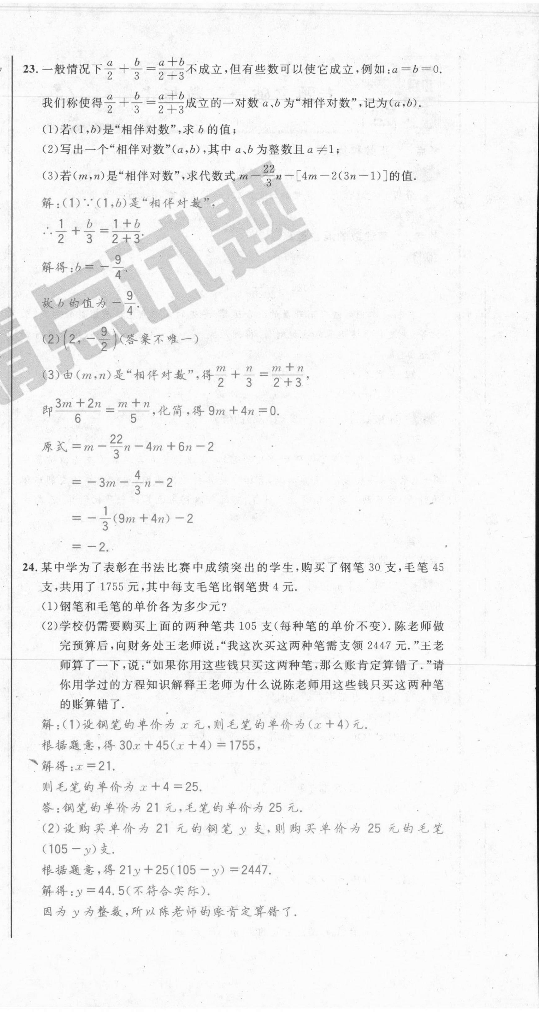 注:目前有些书本章节名称可能整理的还不是很完善,但都是按照顺序排列的,请同学们按照顺序仔细查找。练习册 2021年百所名校精点试题七年级数学上册人教版 答案主要是用来给同学们做完题方便对答案用的,请勿直接抄袭。