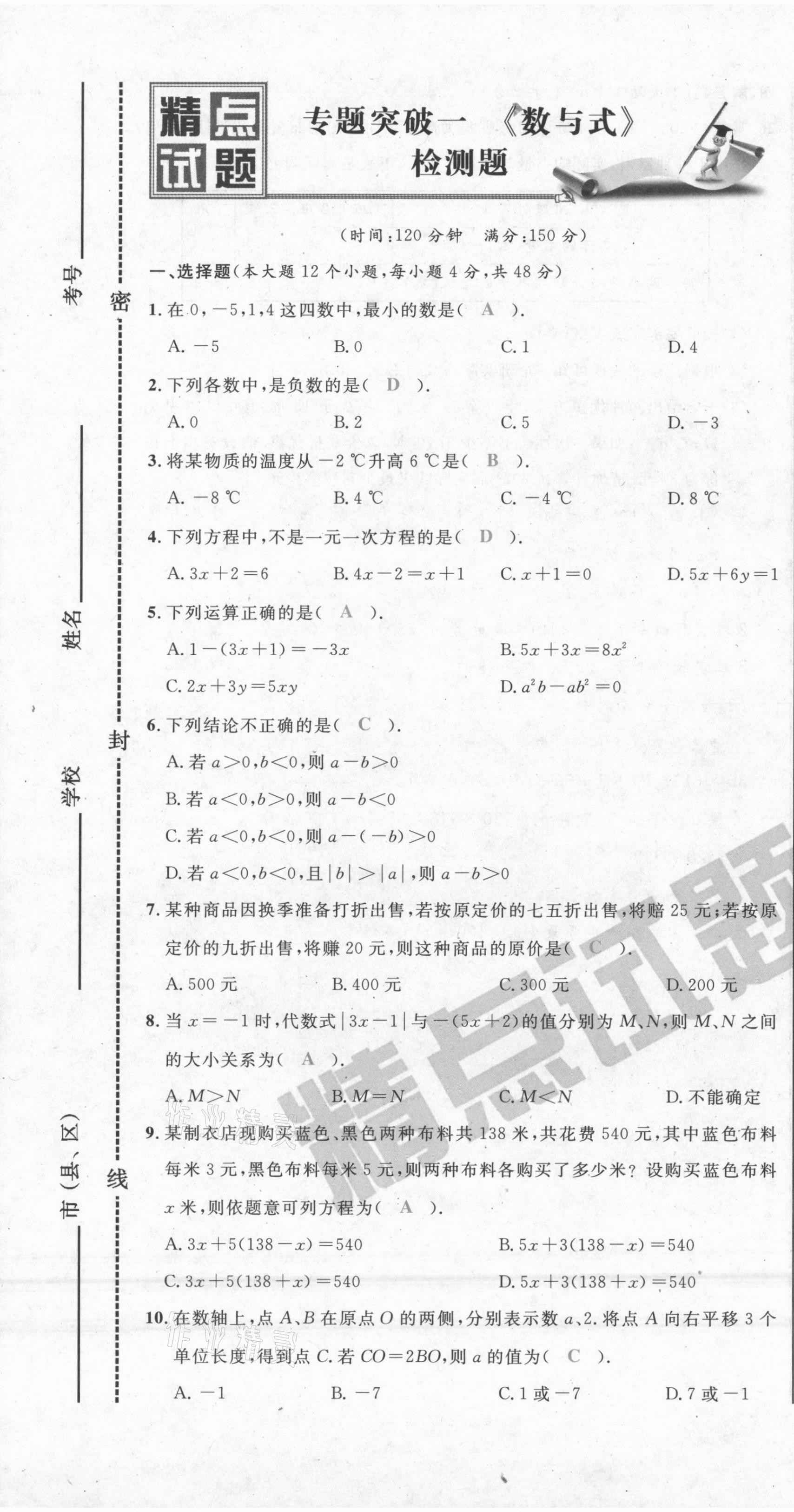 注:目前有些书本章节名称可能整理的还不是很完善,但都是按照顺序排列的,请同学们按照顺序仔细查找。练习册 2021年百所名校精点试题七年级数学上册人教版 答案主要是用来给同学们做完题方便对答案用的,请勿直接抄袭。