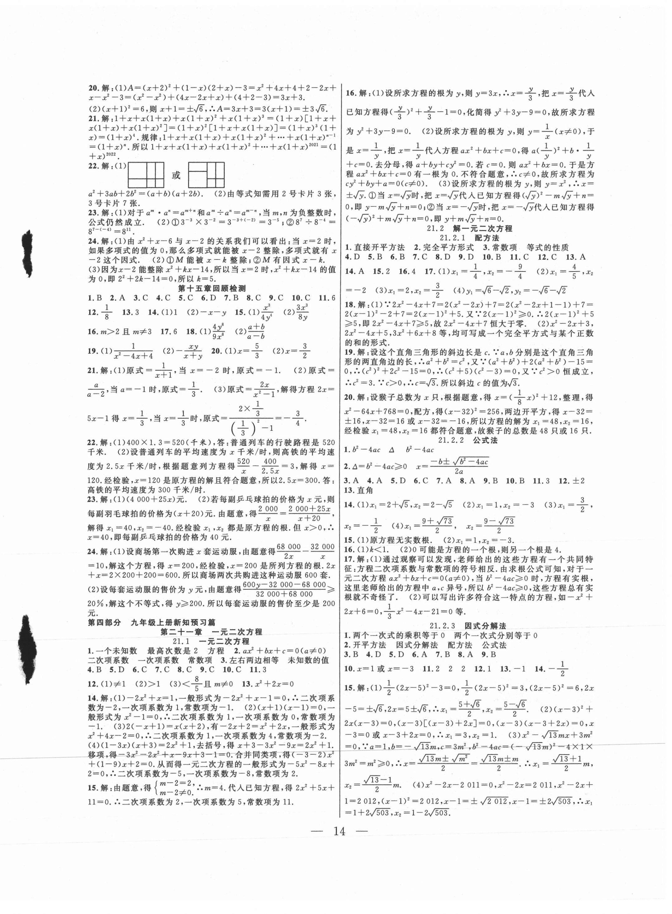 注:目前有些书本章节名称可能整理的还不是很完善,但都是按照顺序排列的,请同学们按照顺序仔细查找。练习册 2021年暑假总动员八年级数学人教版合肥工业大学出版社 答案主要是用来给同学们做完题方便对答案用的,请勿直接抄袭。
