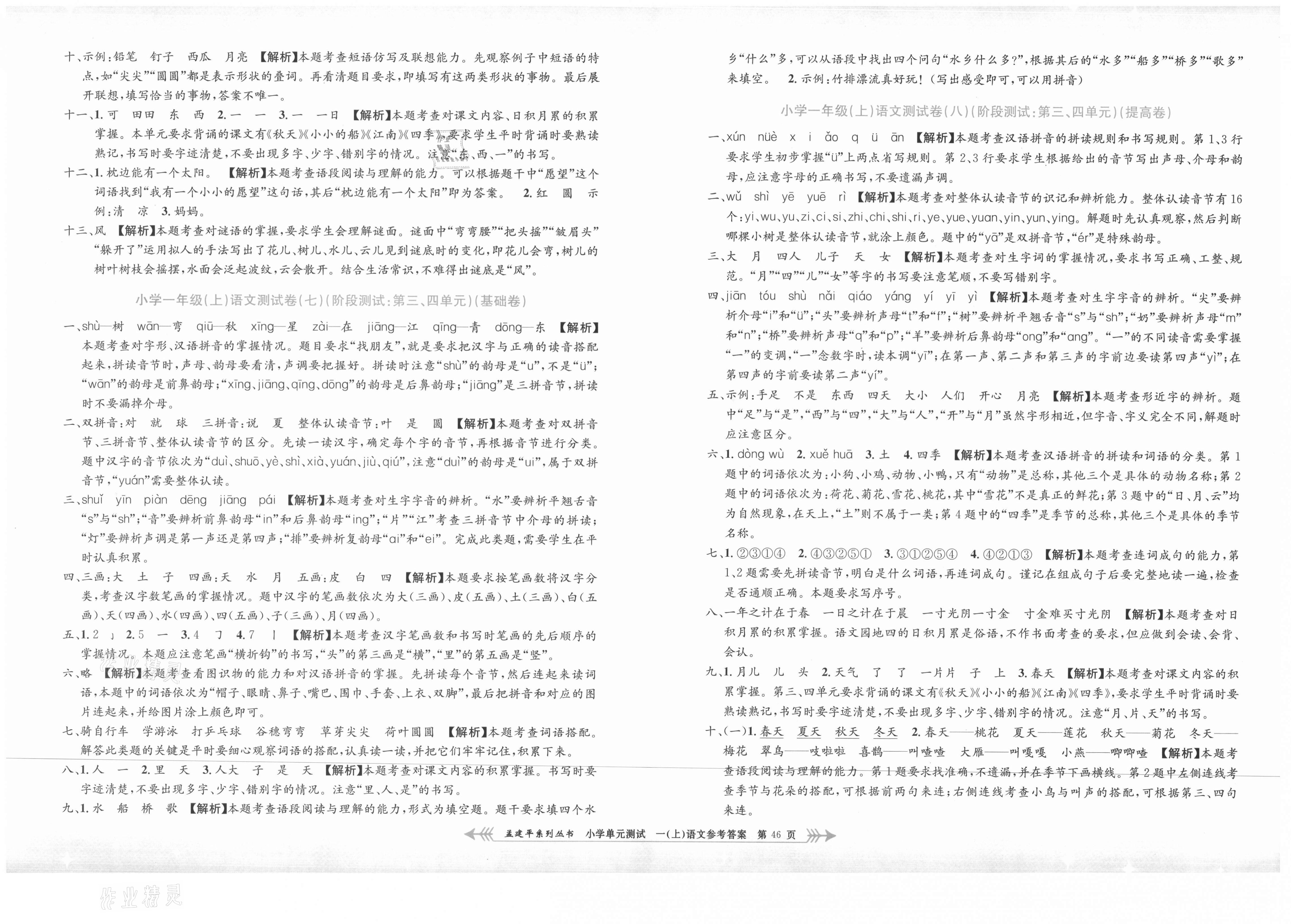 注:目前有些书本章节名称可能整理的还不是很完善,但都是按照顺序排列的,请同学们按照顺序仔细查找。练习册 2021年孟建平小学单元测试一年级语文上册人教版 答案主要是用来给同学们做完题方便对答案用的,请勿直接抄袭。
