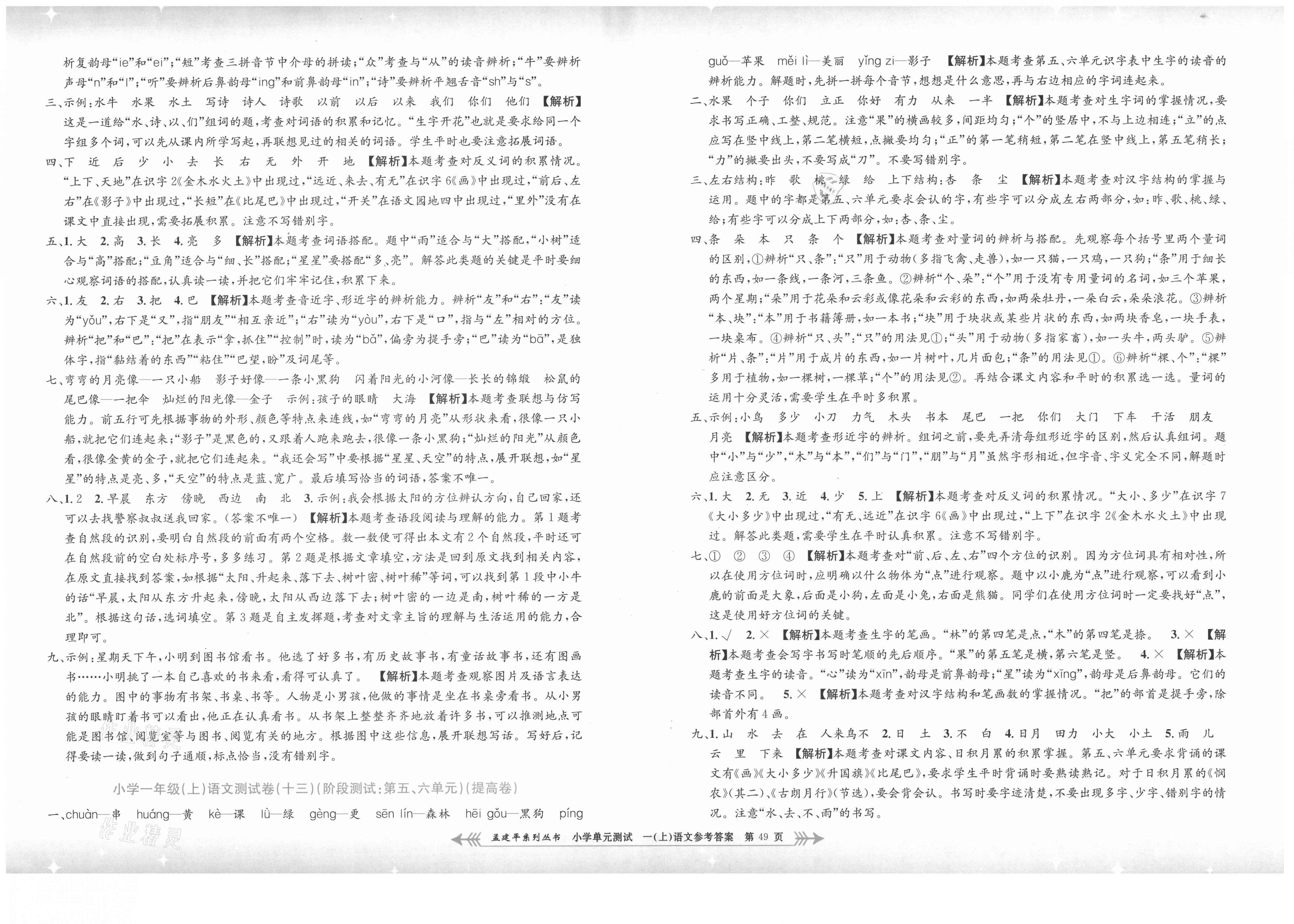 注:目前有些书本章节名称可能整理的还不是很完善,但都是按照顺序排列的,请同学们按照顺序仔细查找。练习册 2021年孟建平小学单元测试一年级语文上册人教版 答案主要是用来给同学们做完题方便对答案用的,请勿直接抄袭。