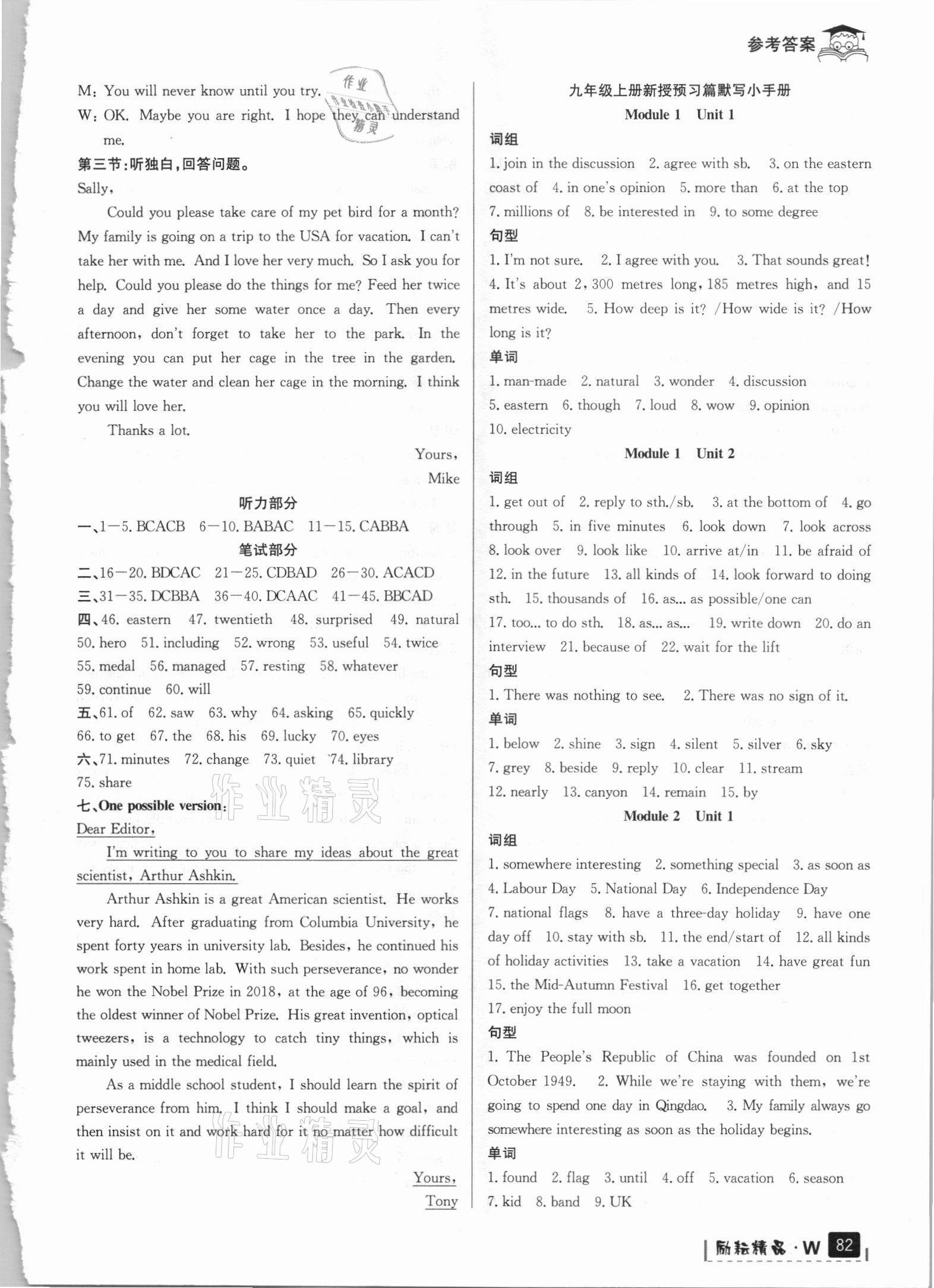 注:目前有些书本章节名称可能整理的还不是很完善,但都是按照顺序排列的,请同学们按照顺序仔细查找。练习册 2021年快乐暑假八年级英语外研版延边人民出版社 答案主要是用来给同学们做完题方便对答案用的,请勿直接抄袭。