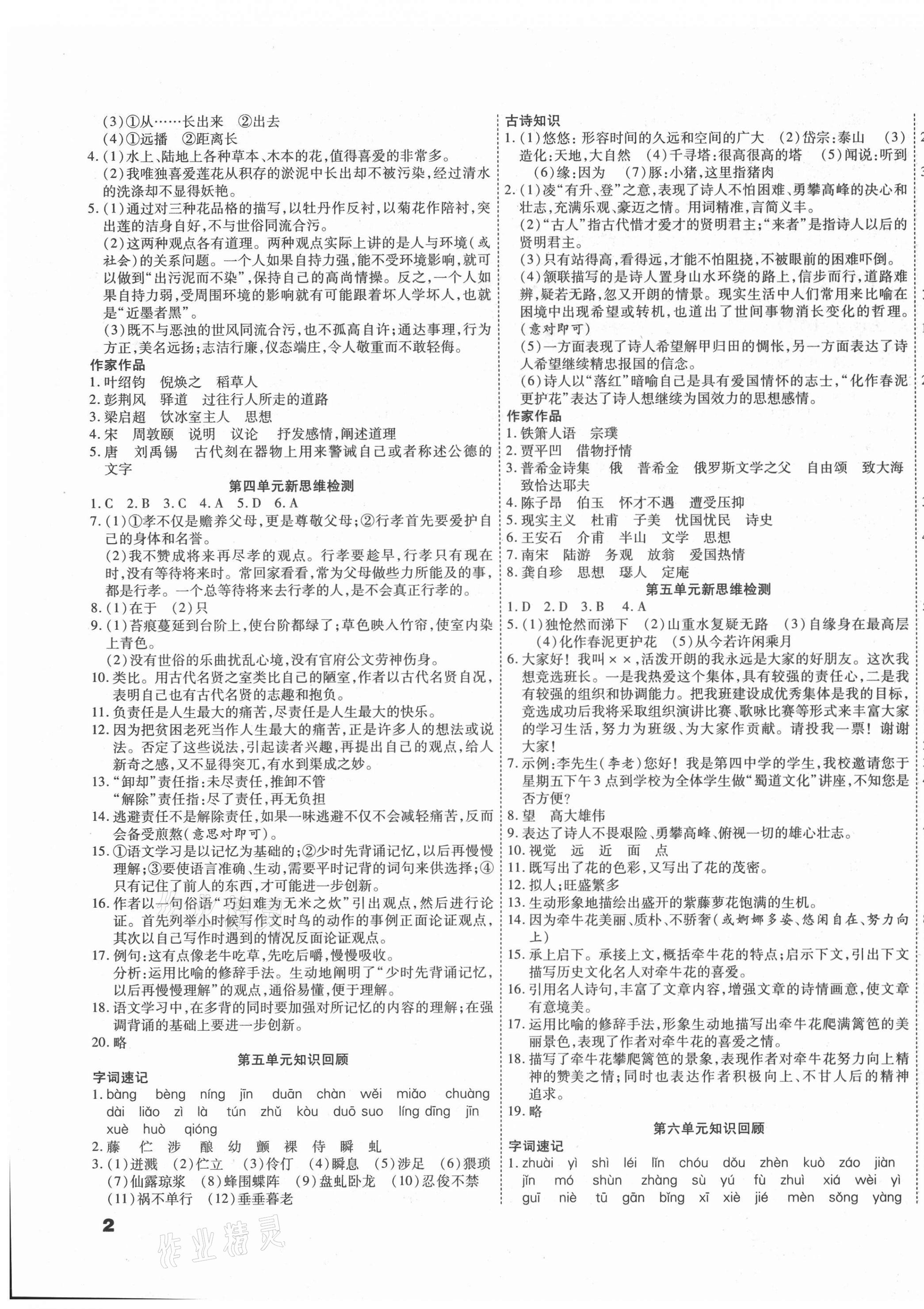 注:目前有些书本章节名称可能整理的还不是很完善,但都是按照顺序排列的,请同学们按照顺序仔细查找。练习册 2021年假期新思维期末暑假衔接七年级语文人教版 答案主要是用来给同学们做完题方便对答案用的,请勿直接抄袭。