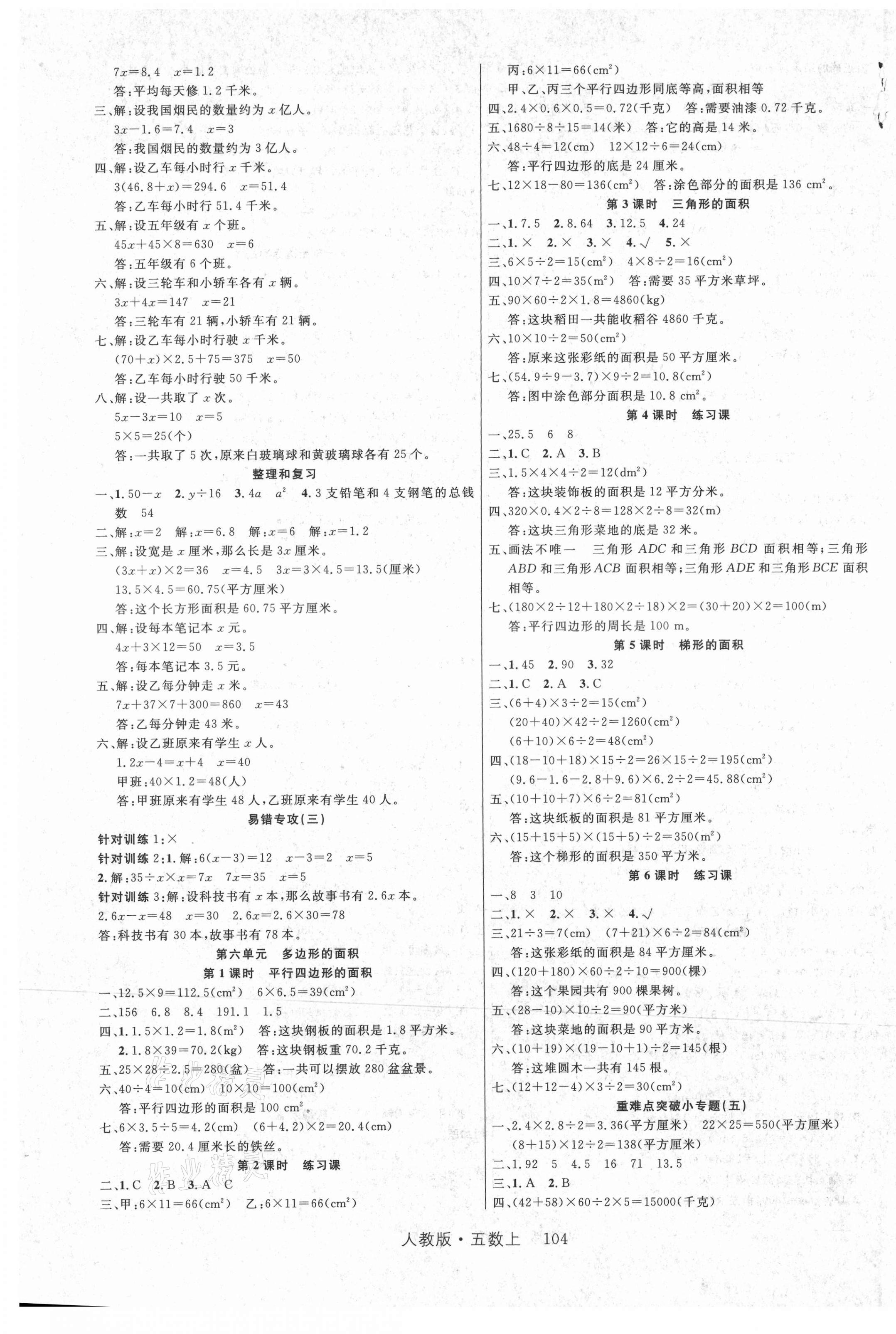 注:目前有些书本章节名称可能整理的还不是很完善,但都是按照顺序排列的,请同学们按照顺序仔细查找。练习册 2021年轻松学习100分五年级数学上册人教版 答案主要是用来给同学们做完题方便对答案用的,请勿直接抄袭。