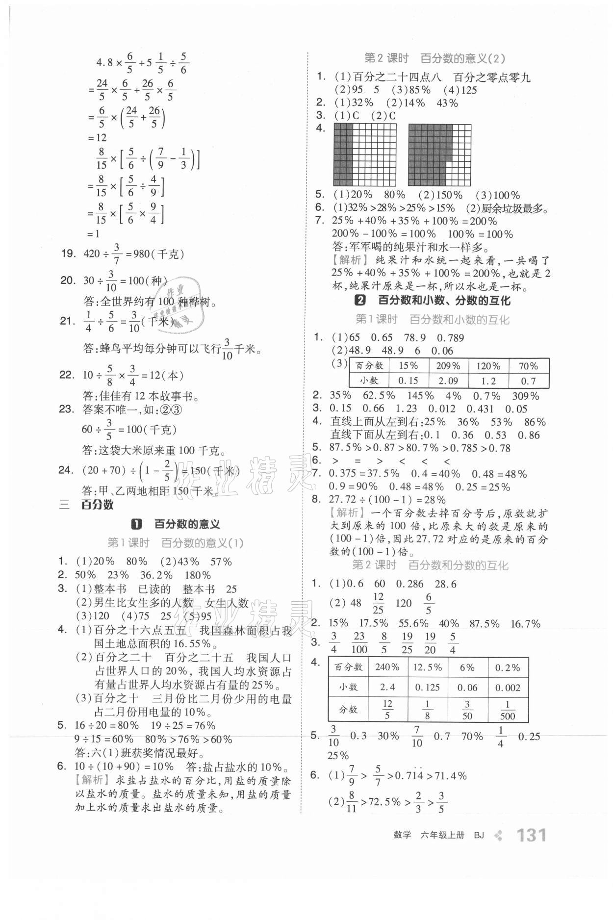 注:目前有些书本章节名称可能整理的还不是很完善,但都是按照顺序排列的,请同学们按照顺序仔细查找。练习册 2021年全品学练考六年级数学上册北京课改版 答案主要是用来给同学们做完题方便对答案用的,请勿直接抄袭。