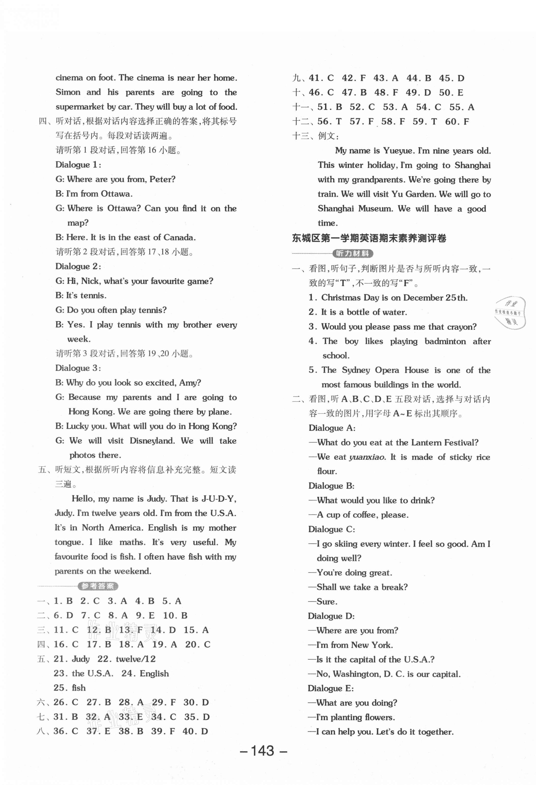 2021年全品学练考五年级英语上册北京课改版1年级起