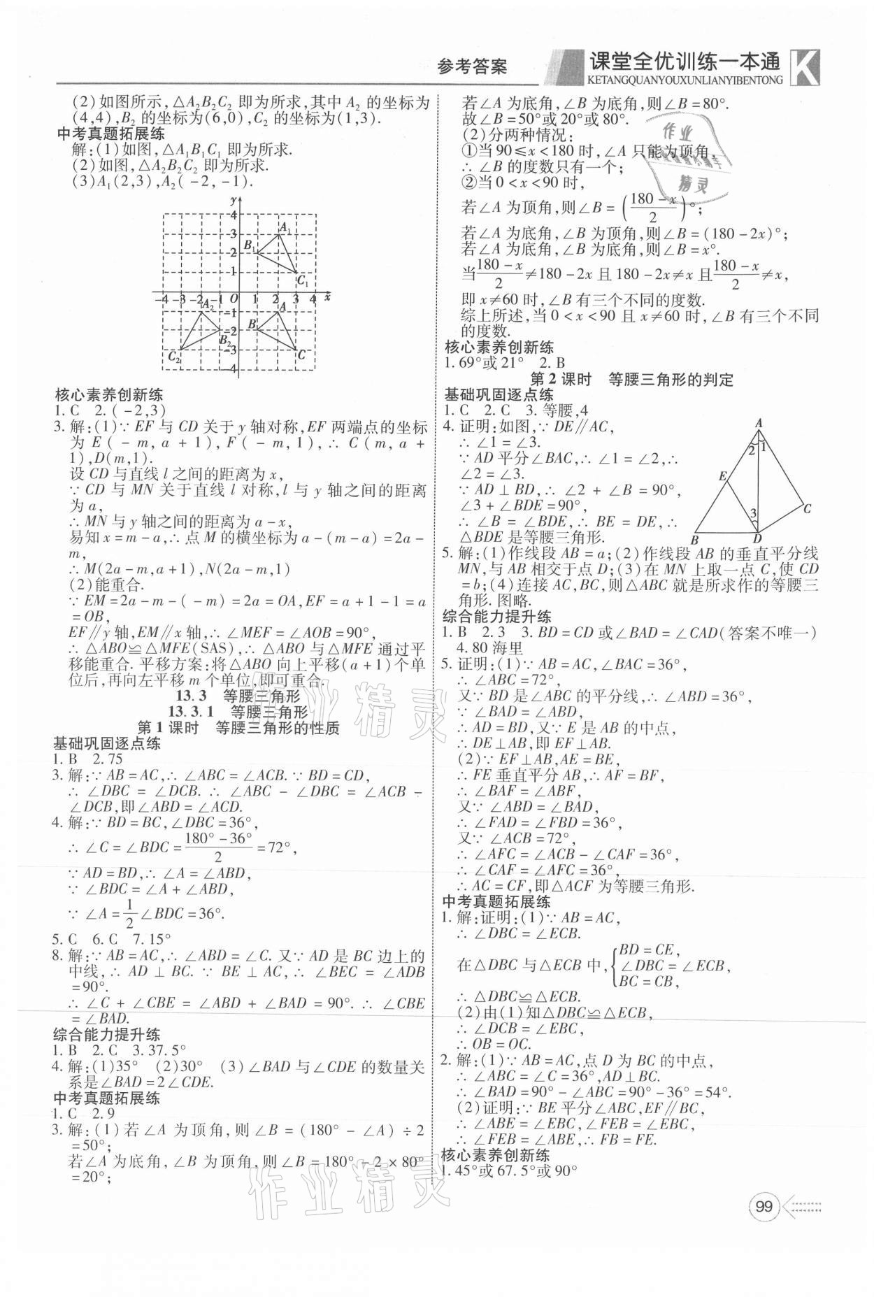 注:目前有些书本章节名称可能整理的还不是很完善,但都是按照顺序排列的,请同学们按照顺序仔细查找。练习册 2021年赢在课堂课堂全优训练一本通八年级数学上册人教版 答案主要是用来给同学们做完题方便对答案用的,请勿直接抄袭。