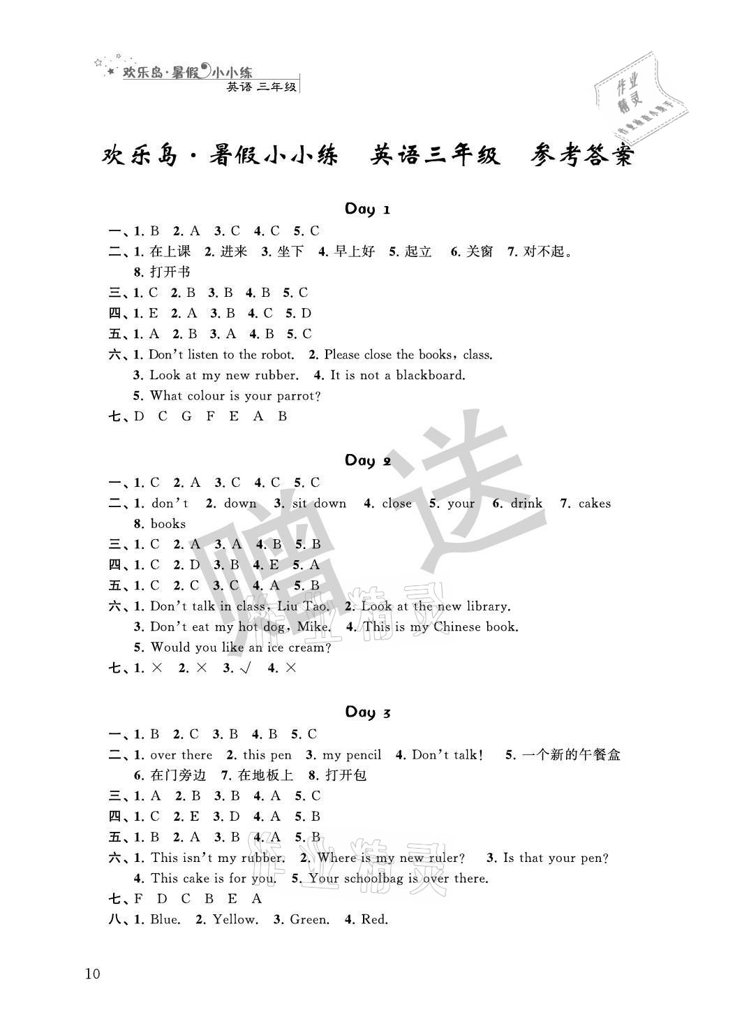 注:目前有些书本章节名称可能整理的还不是很完善,但都是按照顺序排列的,请同学们按照顺序仔细查找。练习册 2021年欢乐岛暑假小小练三年级合订本 答案主要是用来给同学们做完题方便对答案用的,请勿直接抄袭。
