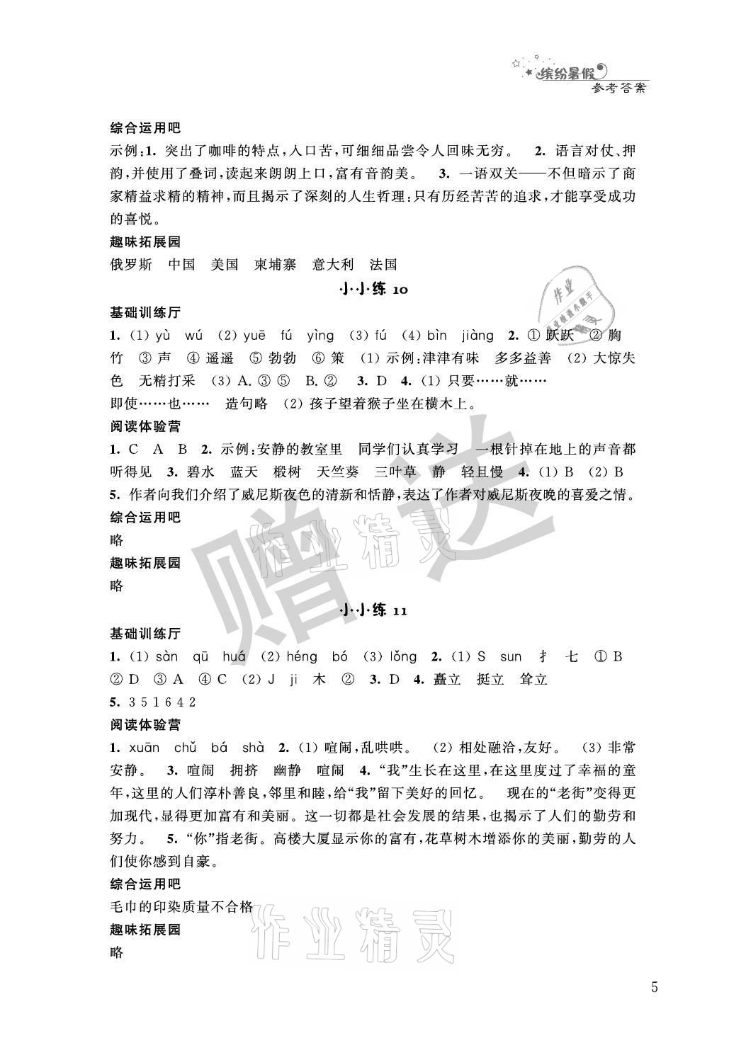 注:目前有些书本章节名称可能整理的还不是很完善,但都是按照顺序排列的,请同学们按照顺序仔细查找。练习册 2021年欢乐岛暑假小小练五年级合订本 答案主要是用来给同学们做完题方便对答案用的,请勿直接抄袭。