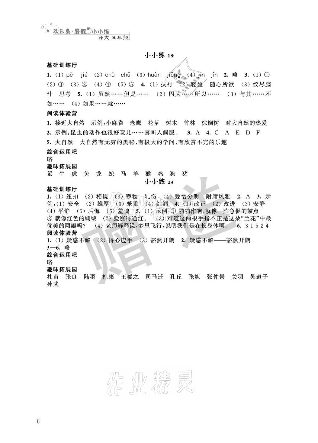 注:目前有些书本章节名称可能整理的还不是很完善,但都是按照顺序排列的,请同学们按照顺序仔细查找。练习册 2021年欢乐岛暑假小小练五年级合订本 答案主要是用来给同学们做完题方便对答案用的,请勿直接抄袭。