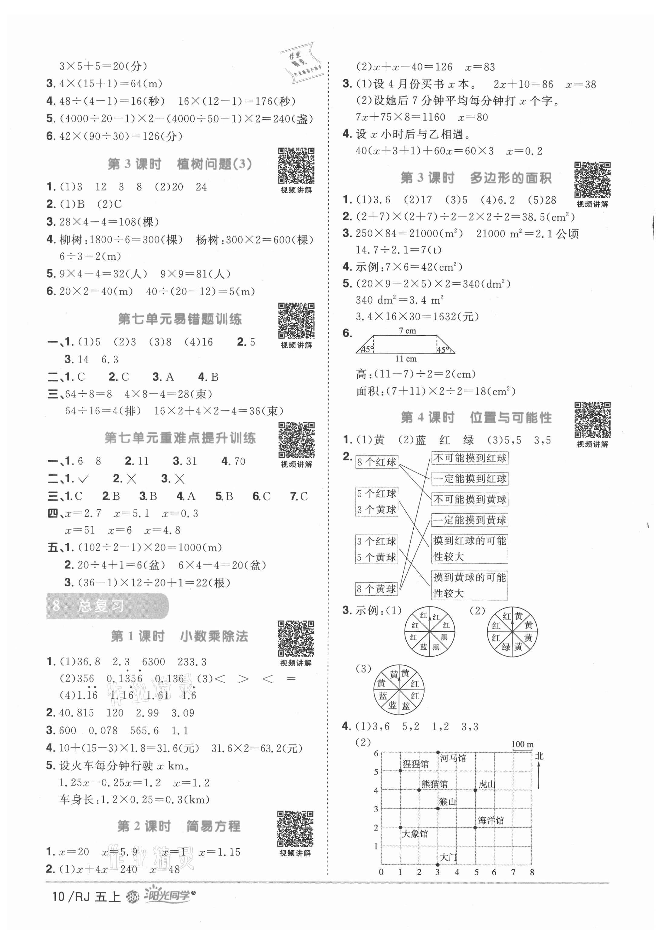 注:目前有些书本章节名称可能整理的还不是很完善,但都是按照顺序排列的,请同学们按照顺序仔细查找。练习册 2021年阳光同学课时优化作业五年级数学上册人教版江门专版 答案主要是用来给同学们做完题方便对答案用的,请勿直接抄袭。