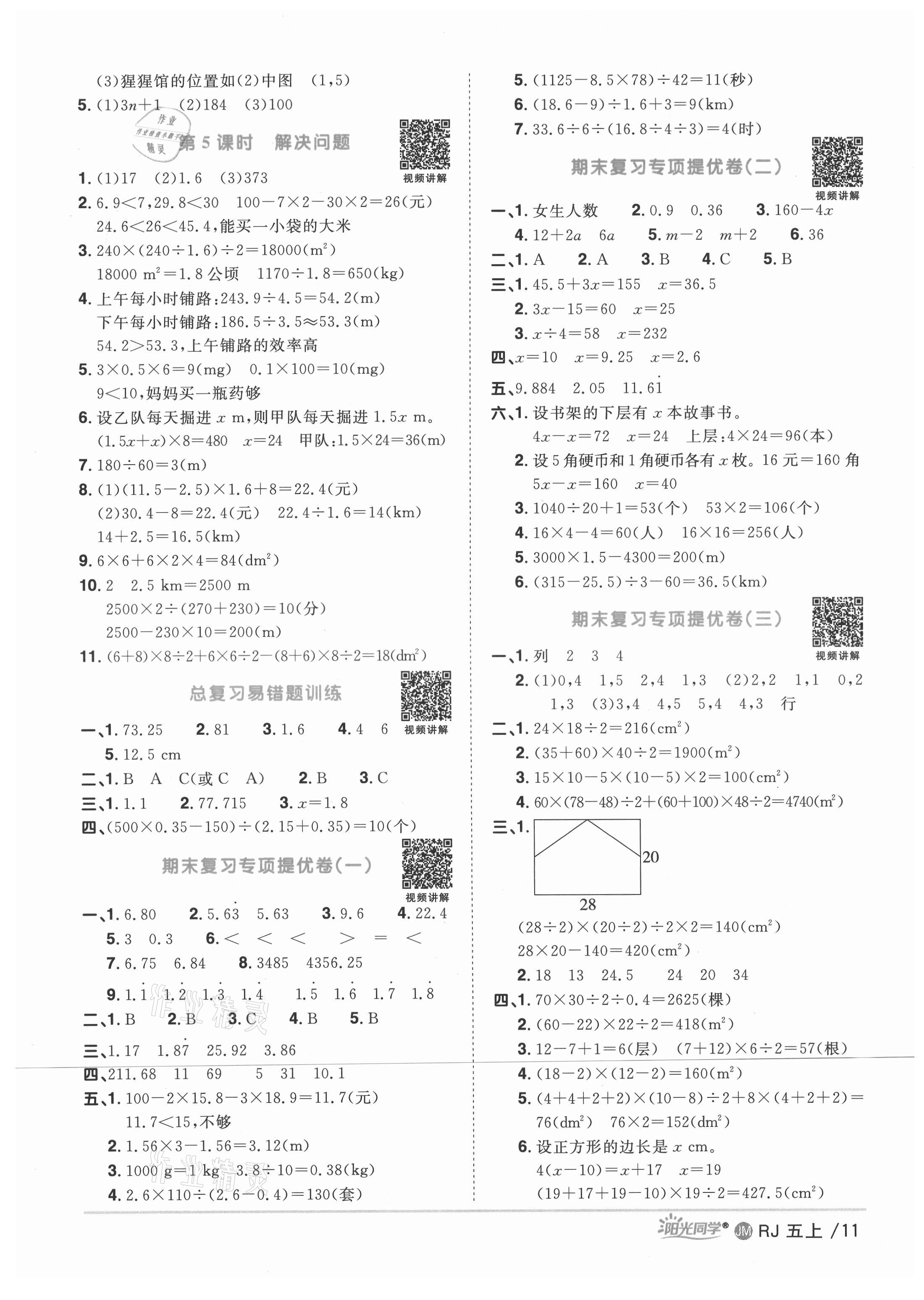 注:目前有些书本章节名称可能整理的还不是很完善,但都是按照顺序排列的,请同学们按照顺序仔细查找。练习册 2021年阳光同学课时优化作业五年级数学上册人教版江门专版 答案主要是用来给同学们做完题方便对答案用的,请勿直接抄袭。