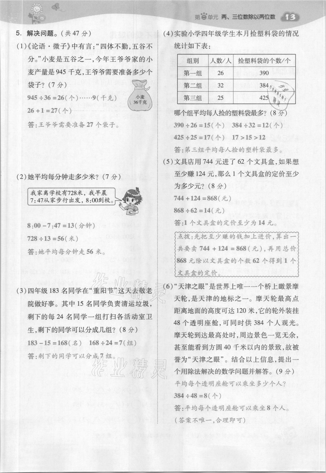 《2021年综合应用创新题典中点四年级数学上册苏教版山西专版》