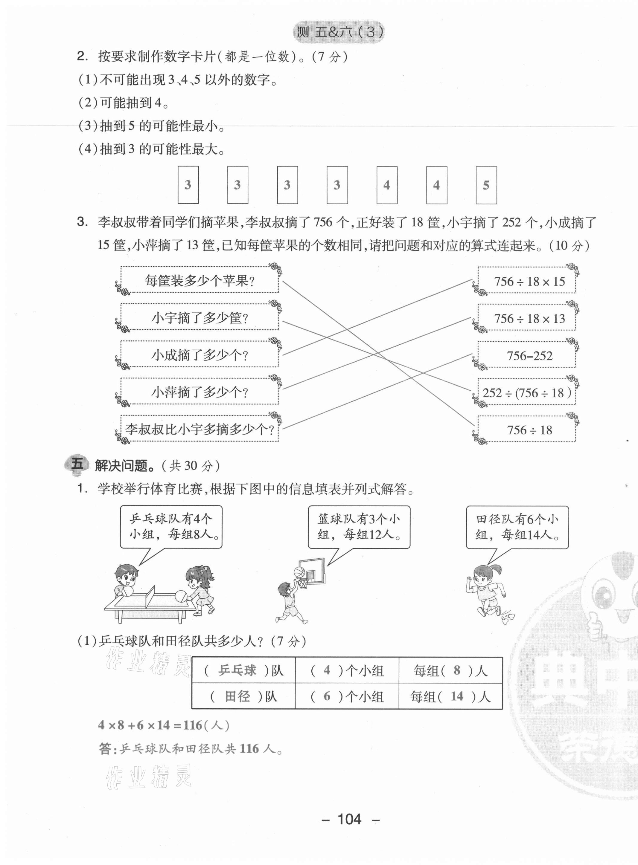 《2021年综合应用创新题典中点四年级数学上册苏教版山西专版》