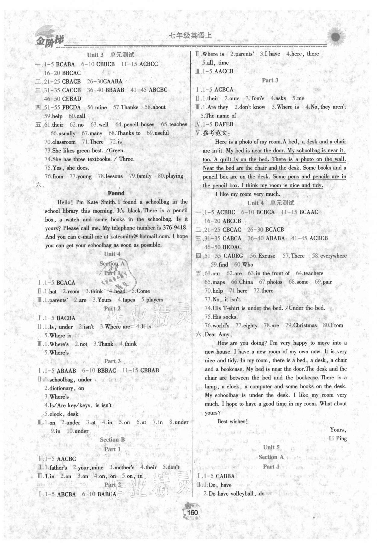 注:目前有些书本章节名称可能整理的还不是很完善,但都是按照顺序排列的,请同学们按照顺序仔细查找。练习册 2021年金阶梯课课练单元测七年级英语上册人教版 答案主要是用来给同学们做完题方便对答案用的,请勿直接抄袭。