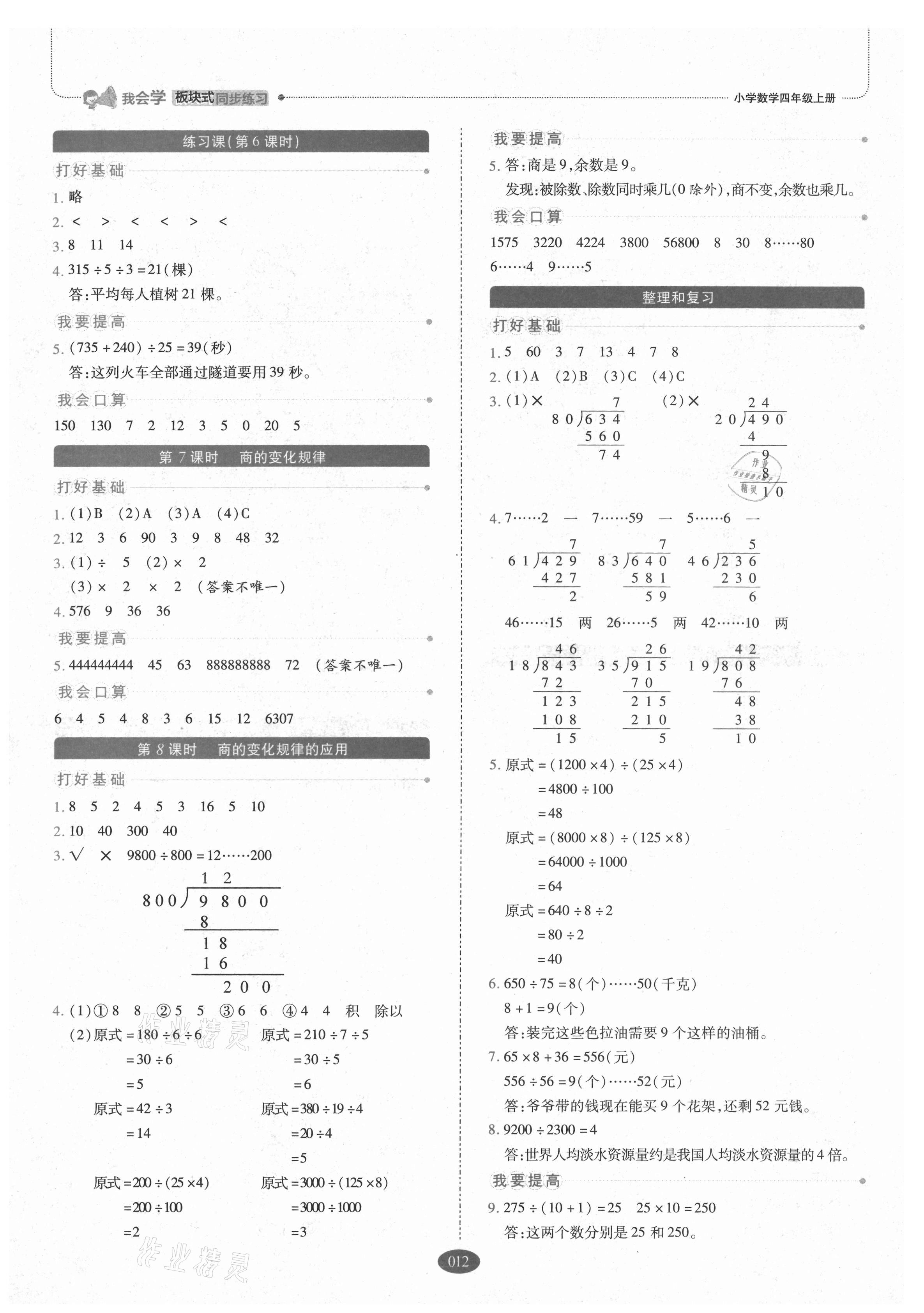 注:目前有些书本章节名称可能整理的还不是很完善,但都是按照顺序排列的,请同学们按照顺序仔细查找。练习册 2021年我会学板块式同步练习小学数学四年级上册人教版 答案主要是用来给同学们做完题方便对答案用的,请勿直接抄袭。