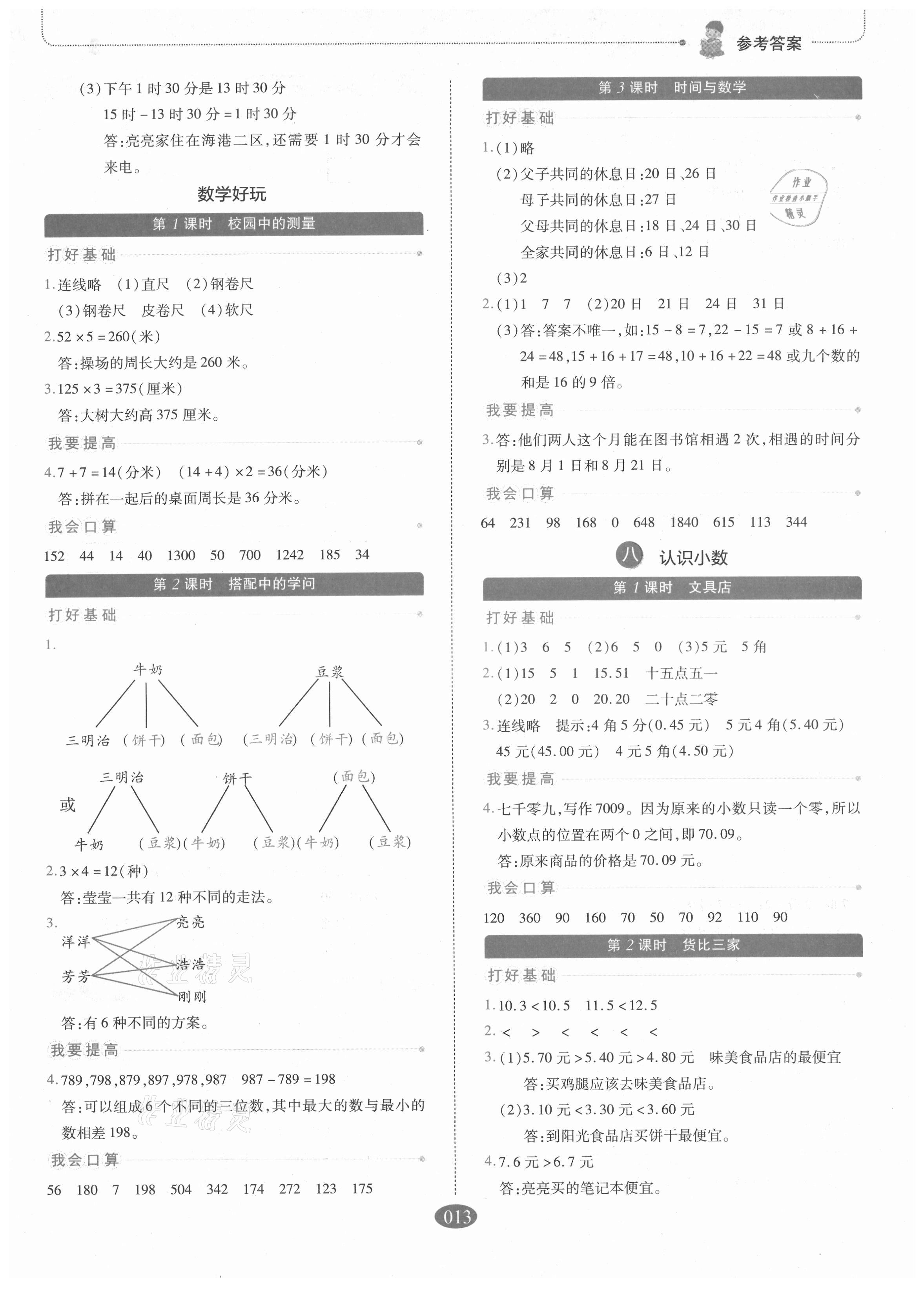 注:目前有些书本章节名称可能整理的还不是很完善,但都是按照顺序排列的,请同学们按照顺序仔细查找。练习册 2021年我会学板块式同步练习三年级数学上册北师大版 答案主要是用来给同学们做完题方便对答案用的,请勿直接抄袭。