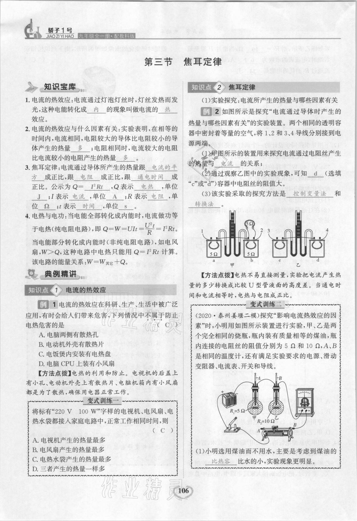 注:目前有些书本章节名称可能整理的还不是很完善,但都是按照顺序排列的,请同学们按照顺序仔细查找。练习册 2021年骄子1号九年级物理全一册教科版 答案主要是用来给同学们做完题方便对答案用的,请勿直接抄袭。