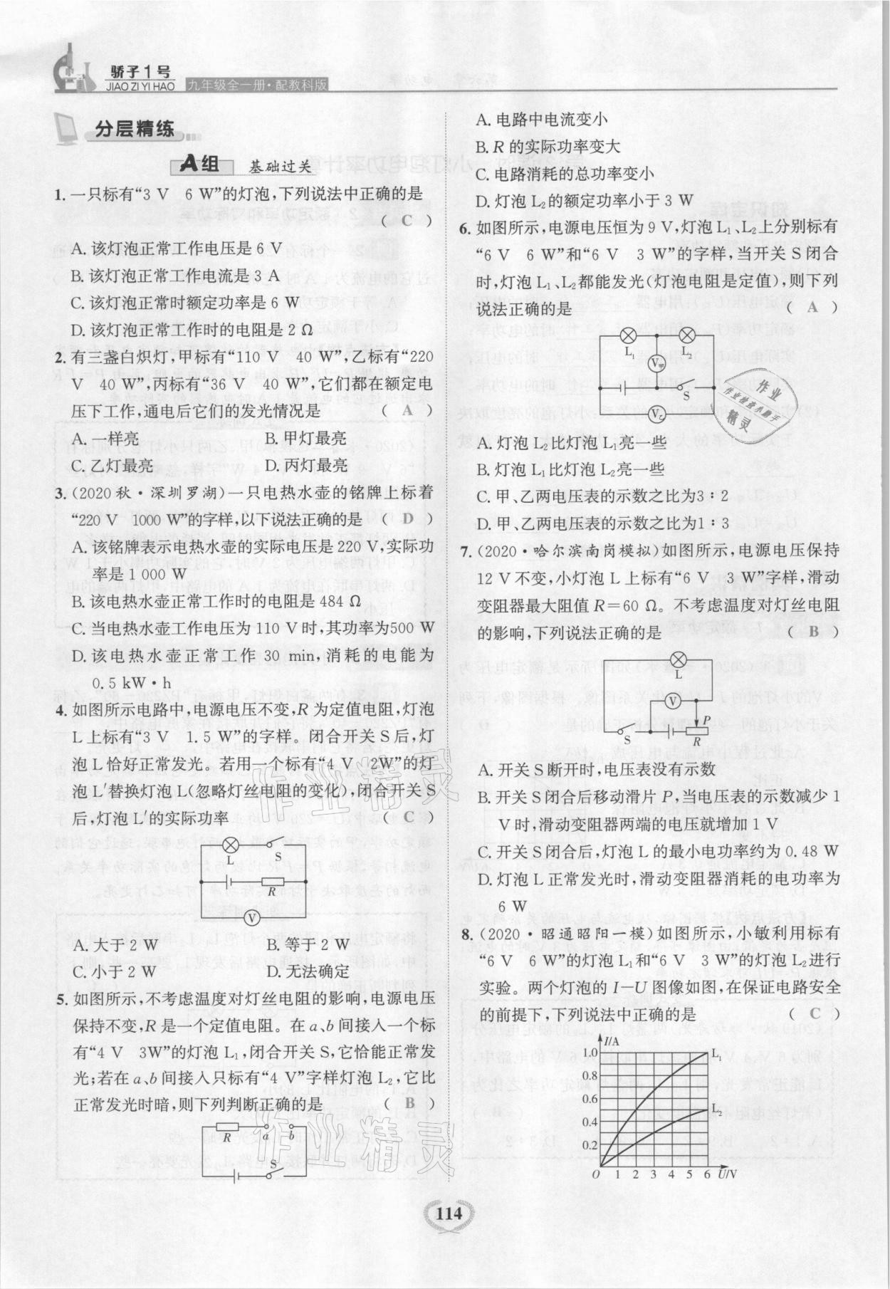 注:目前有些书本章节名称可能整理的还不是很完善,但都是按照顺序排列的,请同学们按照顺序仔细查找。练习册 2021年骄子1号九年级物理全一册教科版 答案主要是用来给同学们做完题方便对答案用的,请勿直接抄袭。