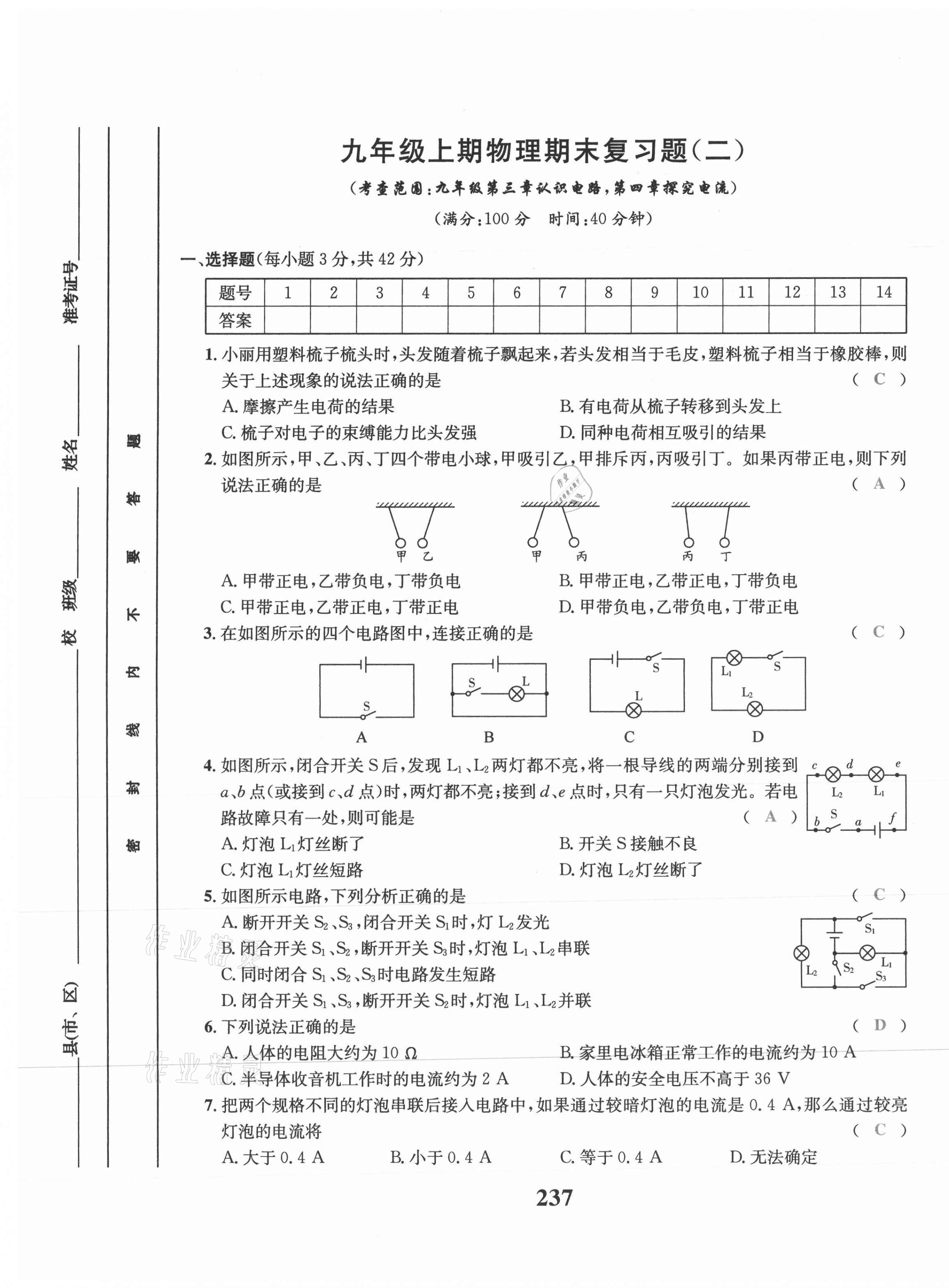 注:目前有些书本章节名称可能整理的还不是很完善,但都是按照顺序排列的,请同学们按照顺序仔细查找。练习册 2021年骄子1号九年级物理全一册教科版 答案主要是用来给同学们做完题方便对答案用的,请勿直接抄袭。