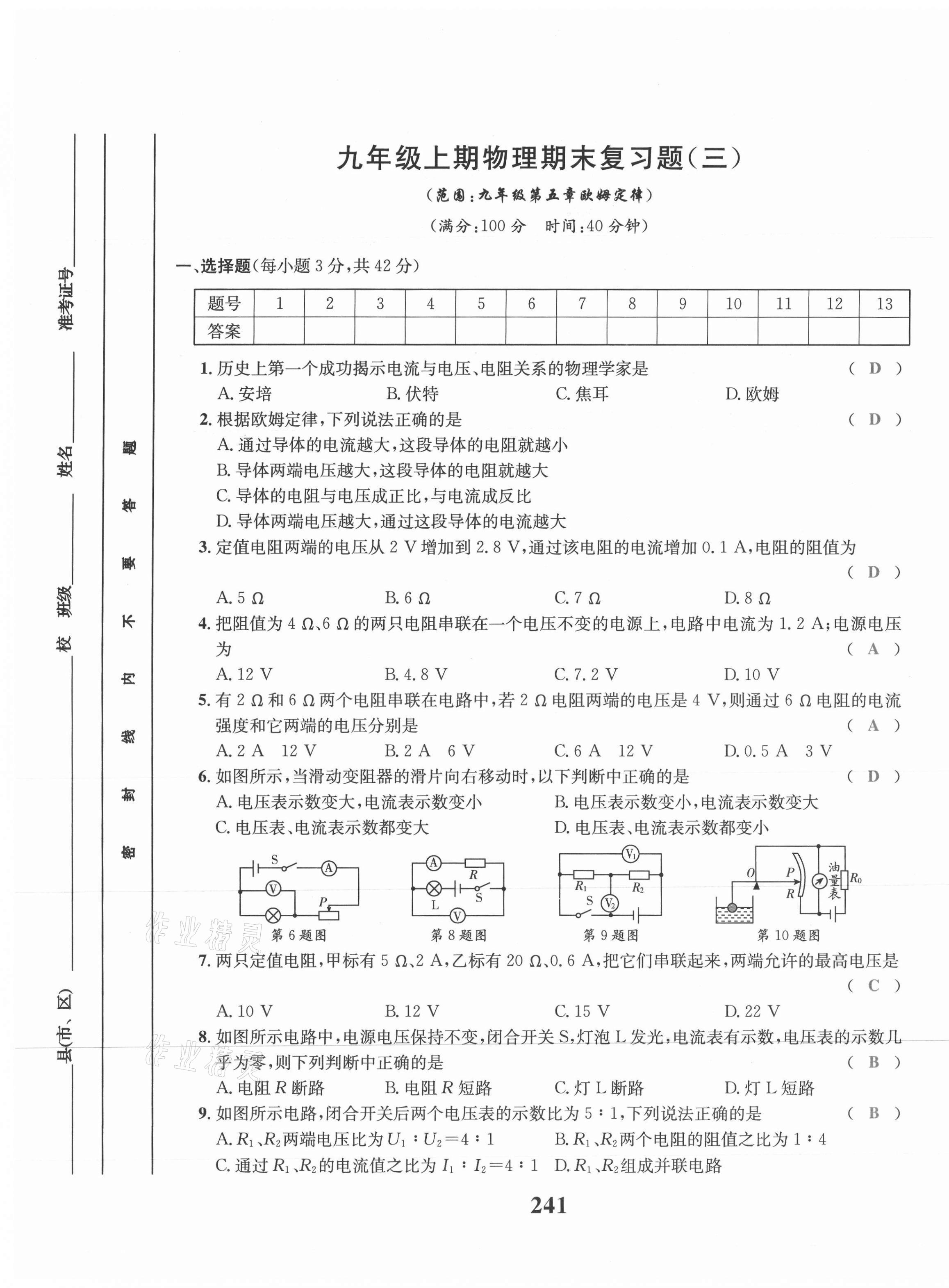 注:目前有些书本章节名称可能整理的还不是很完善,但都是按照顺序排列的,请同学们按照顺序仔细查找。练习册 2021年骄子1号九年级物理全一册教科版 答案主要是用来给同学们做完题方便对答案用的,请勿直接抄袭。
