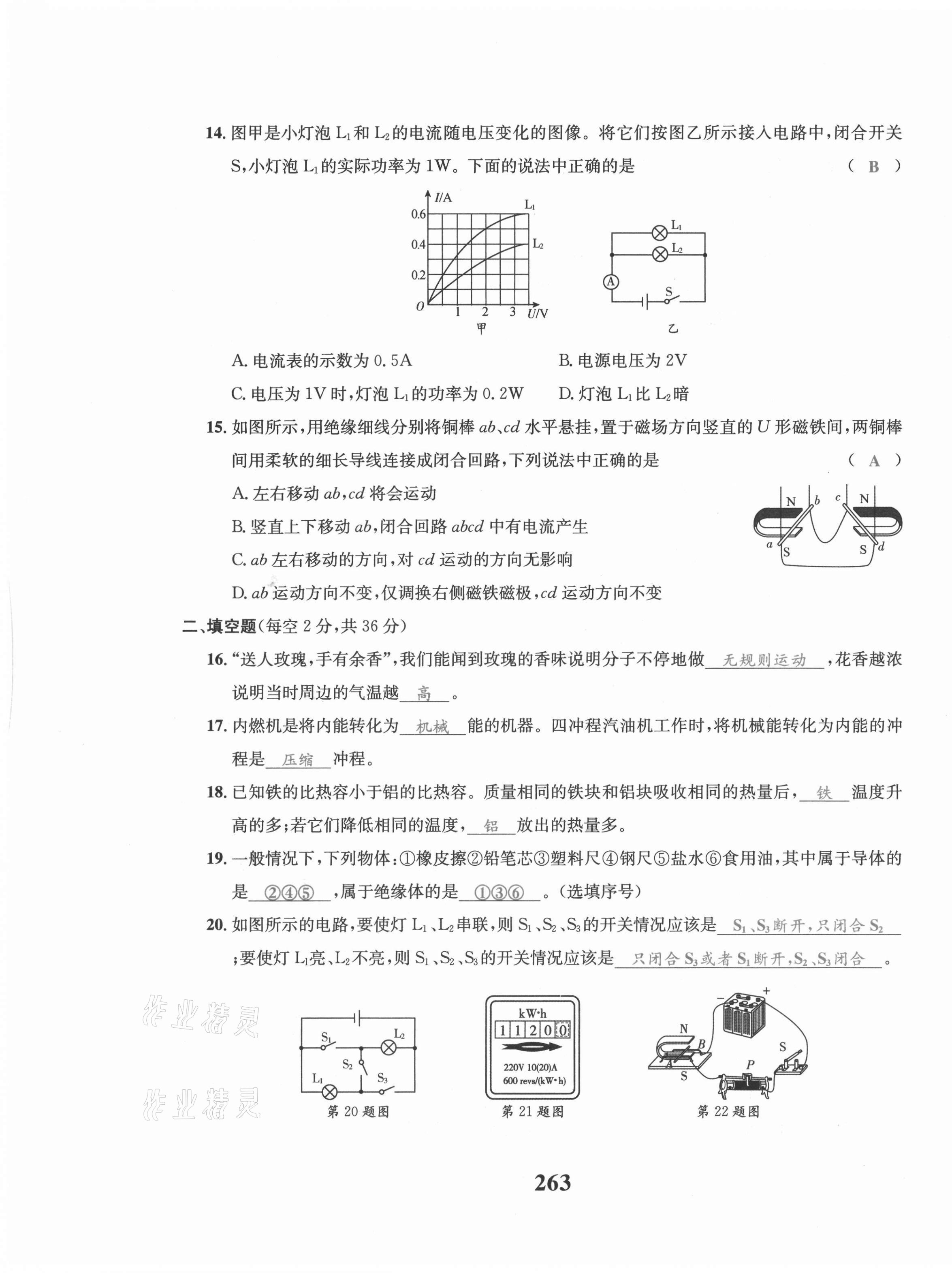 注:目前有些书本章节名称可能整理的还不是很完善,但都是按照顺序排列的,请同学们按照顺序仔细查找。练习册 2021年骄子1号九年级物理全一册教科版 答案主要是用来给同学们做完题方便对答案用的,请勿直接抄袭。