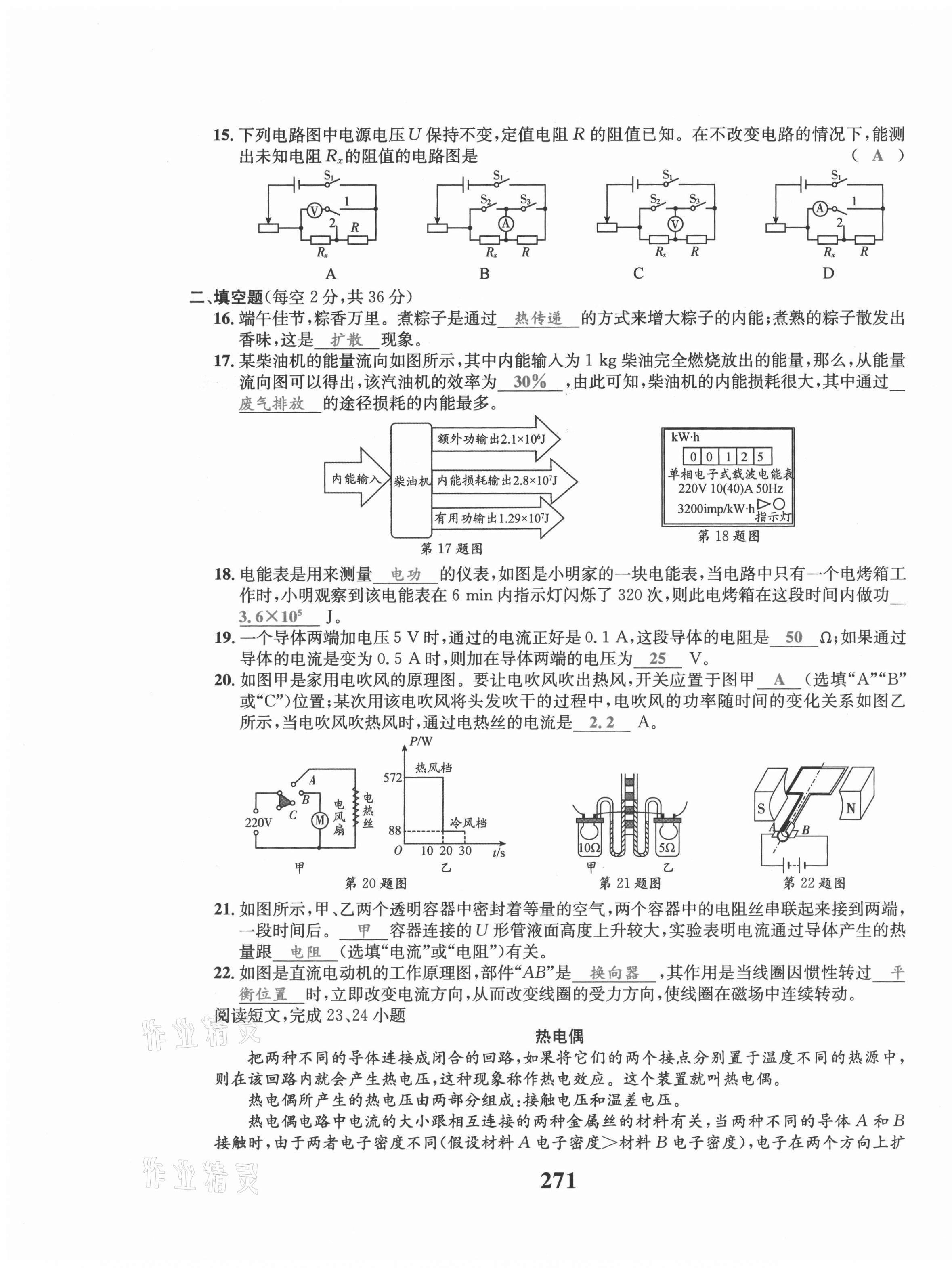 注:目前有些书本章节名称可能整理的还不是很完善,但都是按照顺序排列的,请同学们按照顺序仔细查找。练习册 2021年骄子1号九年级物理全一册教科版 答案主要是用来给同学们做完题方便对答案用的,请勿直接抄袭。