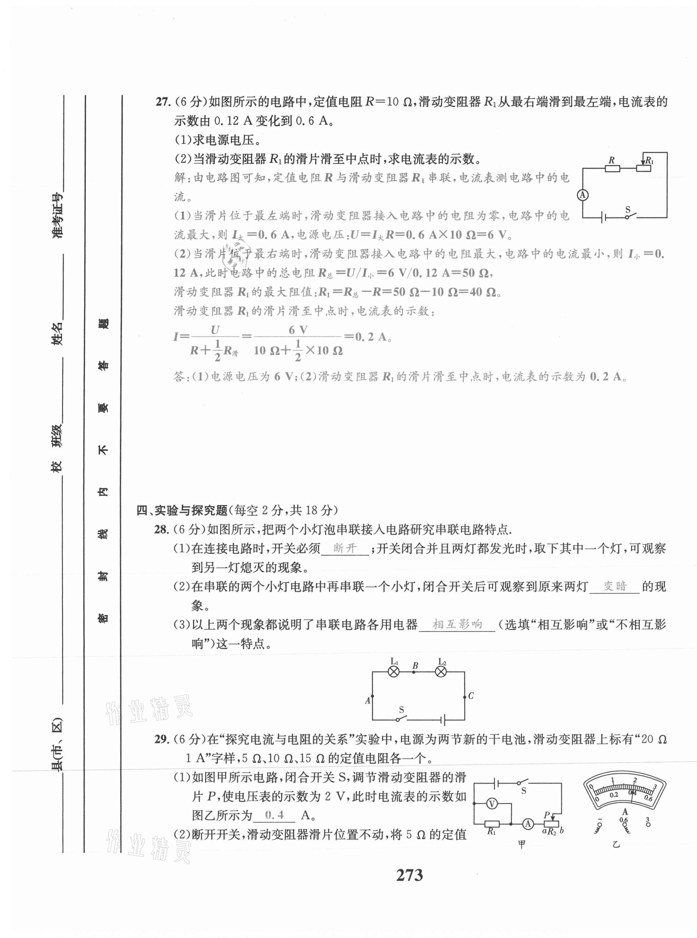注:目前有些书本章节名称可能整理的还不是很完善,但都是按照顺序排列的,请同学们按照顺序仔细查找。练习册 2021年骄子1号九年级物理全一册教科版 答案主要是用来给同学们做完题方便对答案用的,请勿直接抄袭。