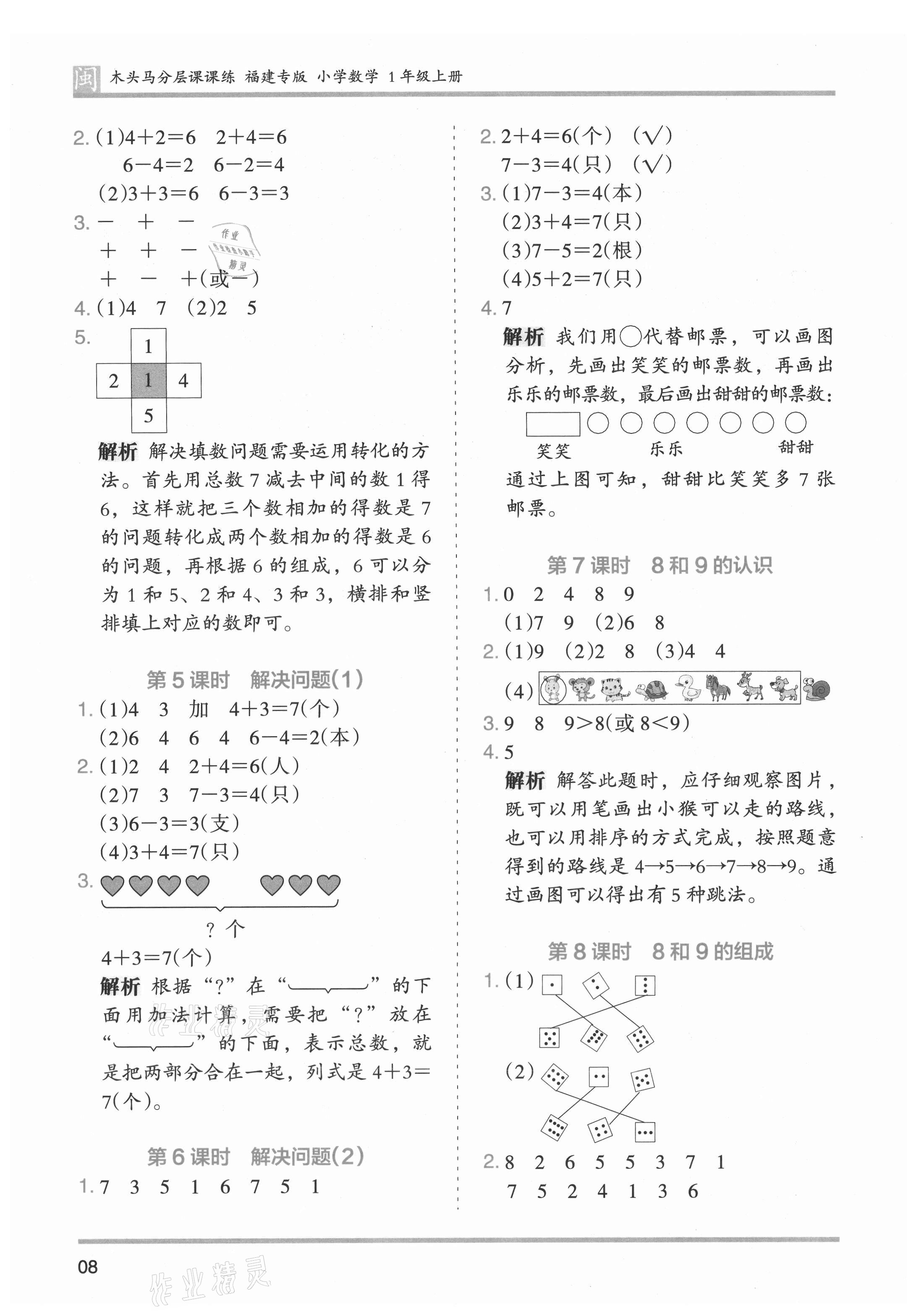 注:目前有些书本章节名称可能整理的还不是很完善,但都是按照顺序排列的,请同学们按照顺序仔细查找。练习册 2021年木头马分层课课练一年级数学上册人教版福建专版 答案主要是用来给同学们做完题方便对答案用的,请勿直接抄袭。
