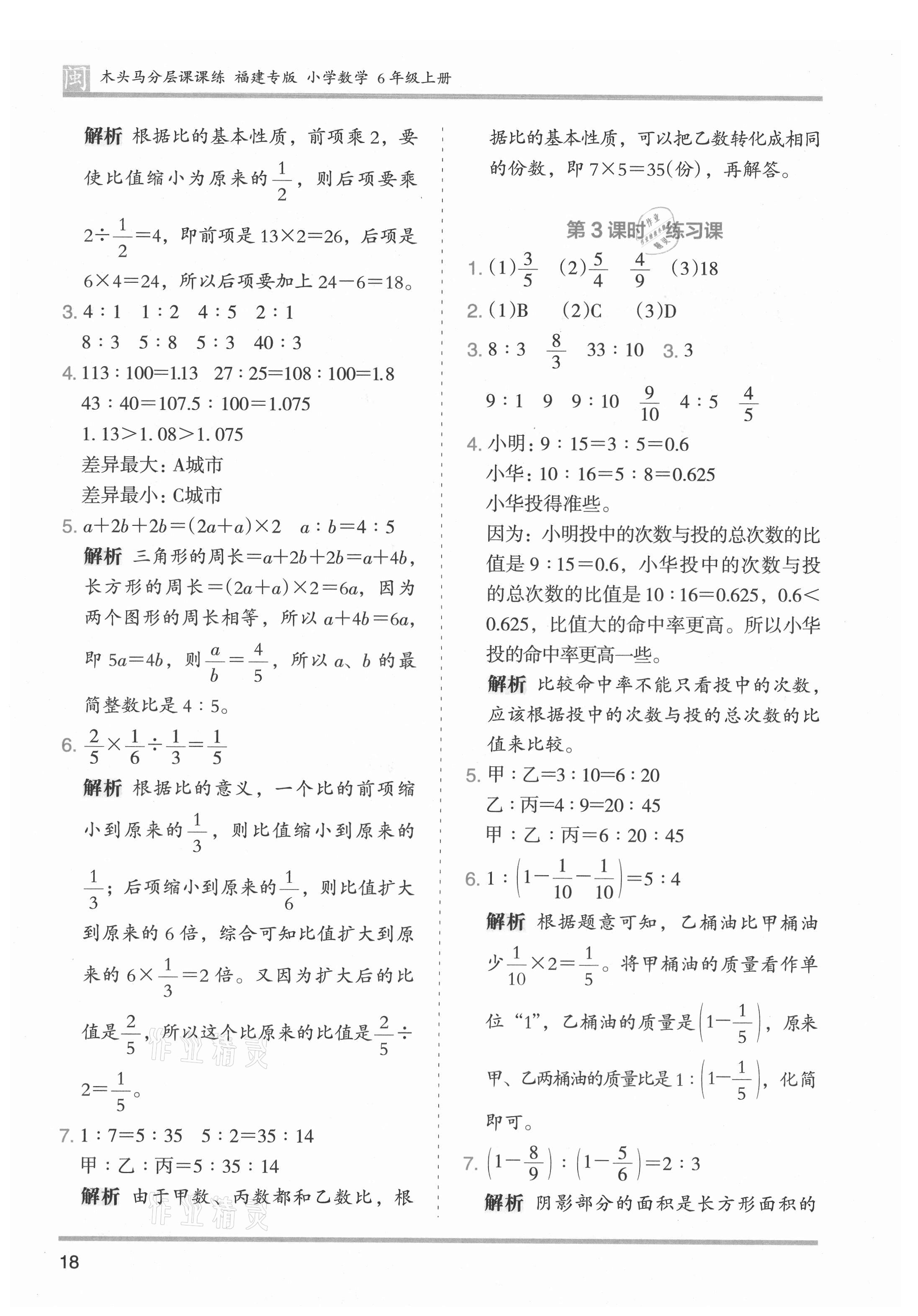 注:目前有些书本章节名称可能整理的还不是很完善,但都是按照顺序排列的,请同学们按照顺序仔细查找。练习册 2021年木头马分层课课练六年级数学上册人教版福建专版 答案主要是用来给同学们做完题方便对答案用的,请勿直接抄袭。