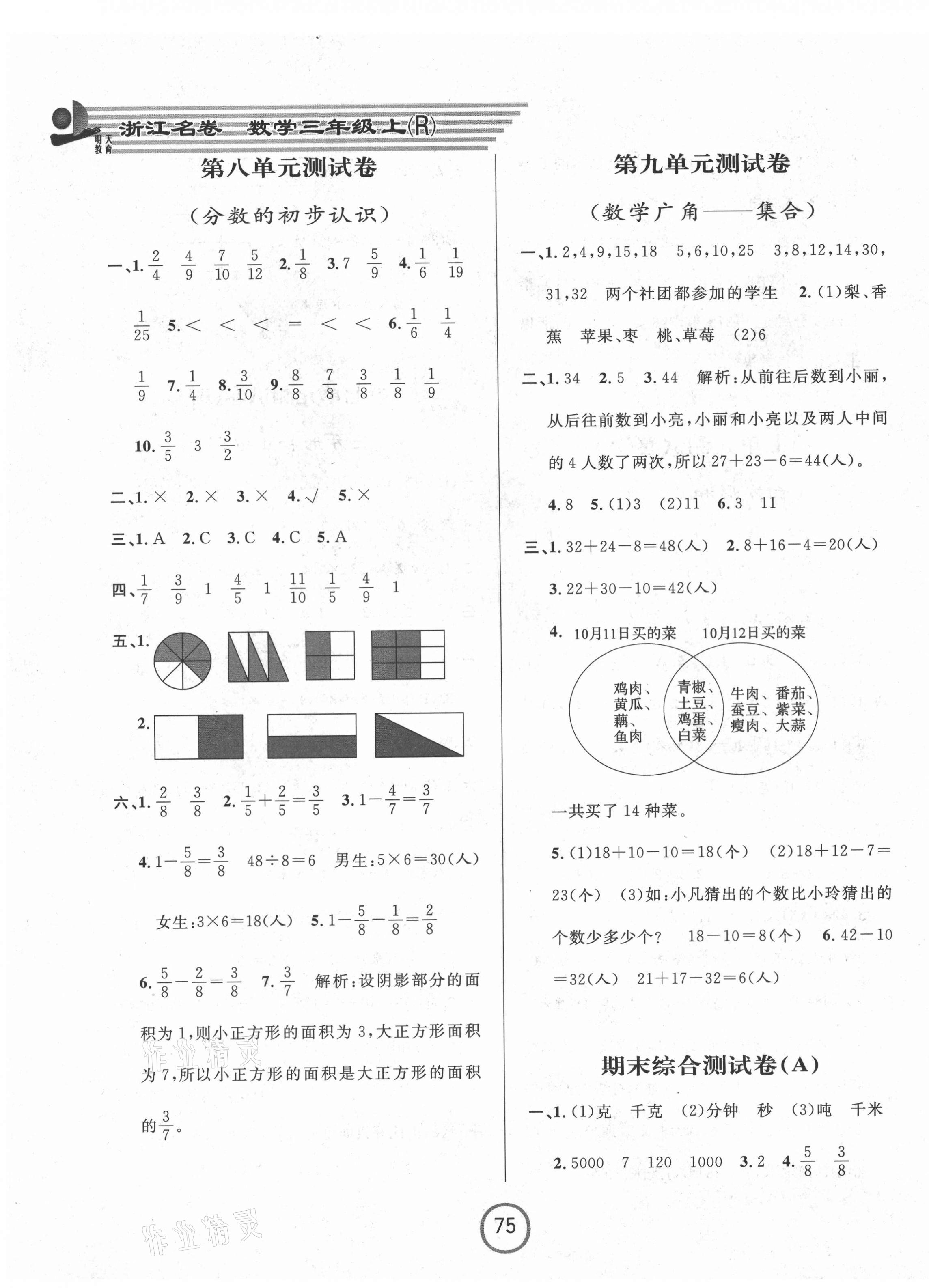 注:目前有些书本章节名称可能整理的还不是很完善,但都是按照顺序排列的,请同学们按照顺序仔细查找。练习册 2021年浙江名卷三年级数学上册人教版 答案主要是用来给同学们做完题方便对答案用的,请勿直接抄袭。