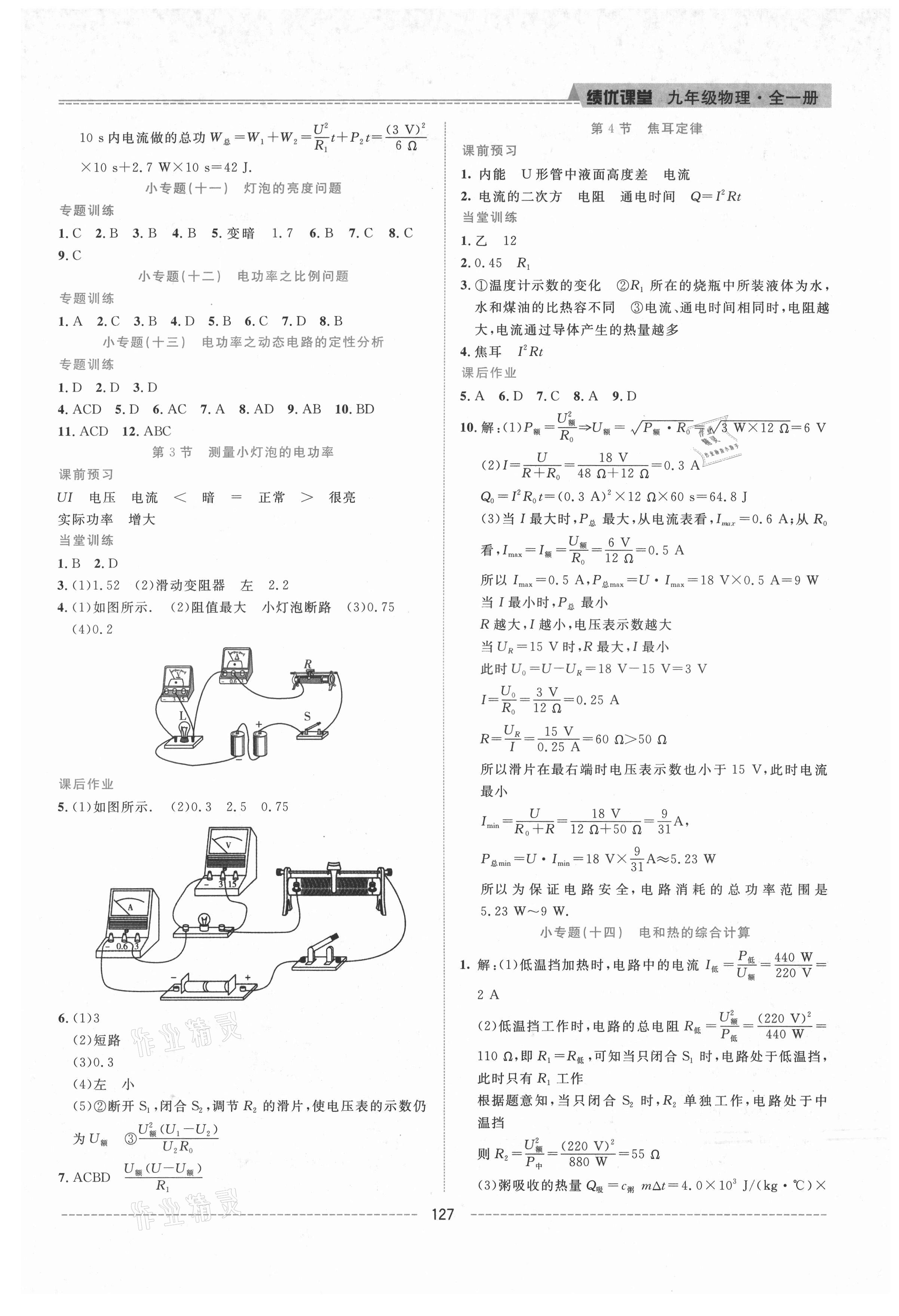 注:目前有些书本章节名称可能整理的还不是很完善,但都是按照顺序排列的,请同学们按照顺序仔细查找。练习册 2021年绩优课堂高效提升满分备考九年级物理全一册人教版 答案主要是用来给同学们做完题方便对答案用的,请勿直接抄袭。