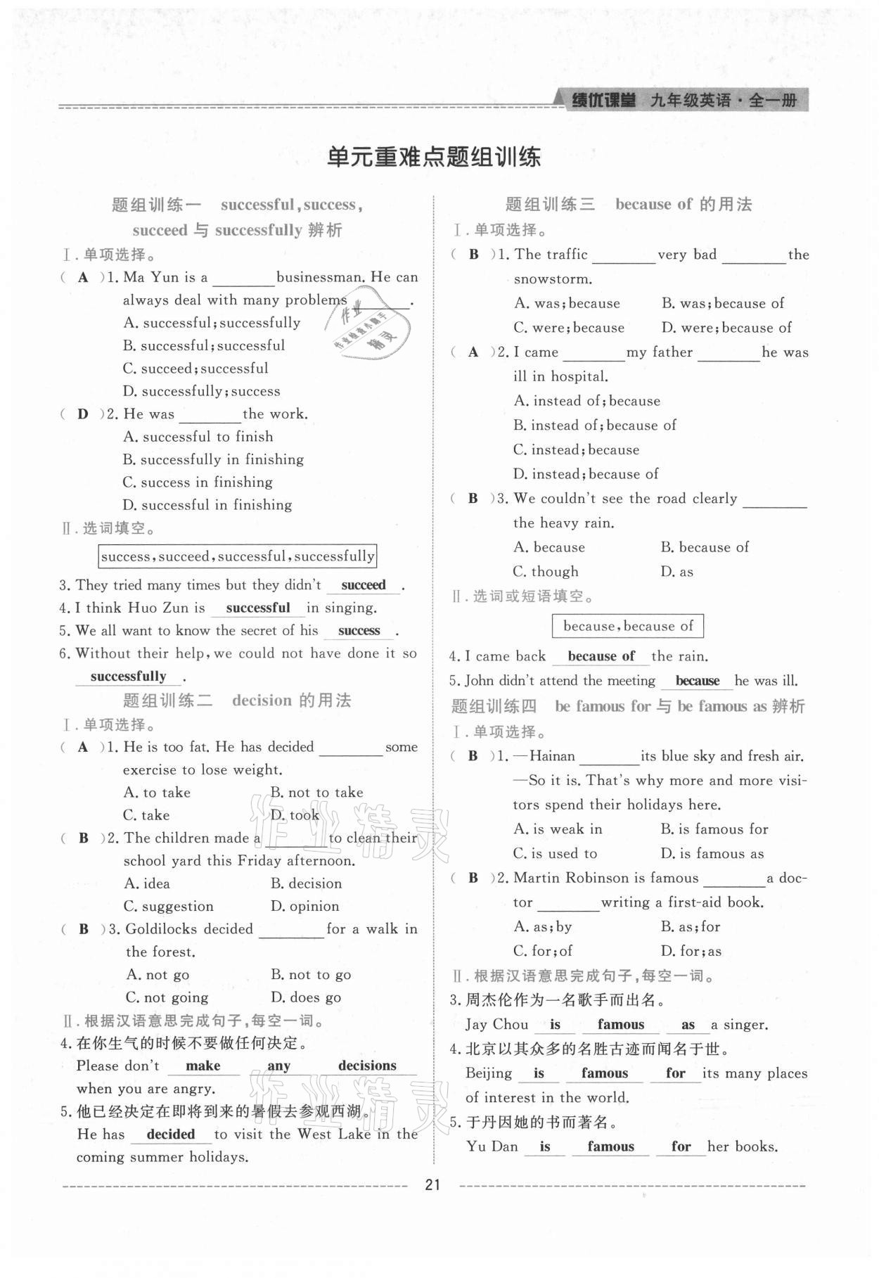 注:目前有些书本章节名称可能整理的还不是很完善,但都是按照顺序排列的,请同学们按照顺序仔细查找。练习册 2021年绩优课堂高效提升满分备考九年级英语冀教版河北专版 答案主要是用来给同学们做完题方便对答案用的,请勿直接抄袭。