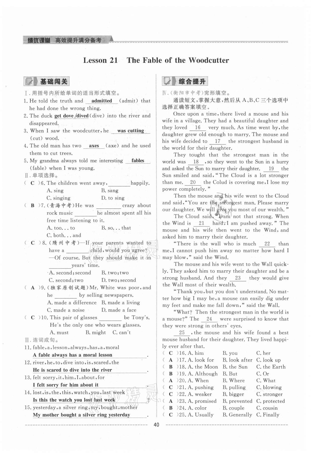 注:目前有些书本章节名称可能整理的还不是很完善,但都是按照顺序排列的,请同学们按照顺序仔细查找。练习册 2021年绩优课堂高效提升满分备考九年级英语冀教版河北专版 答案主要是用来给同学们做完题方便对答案用的,请勿直接抄袭。
