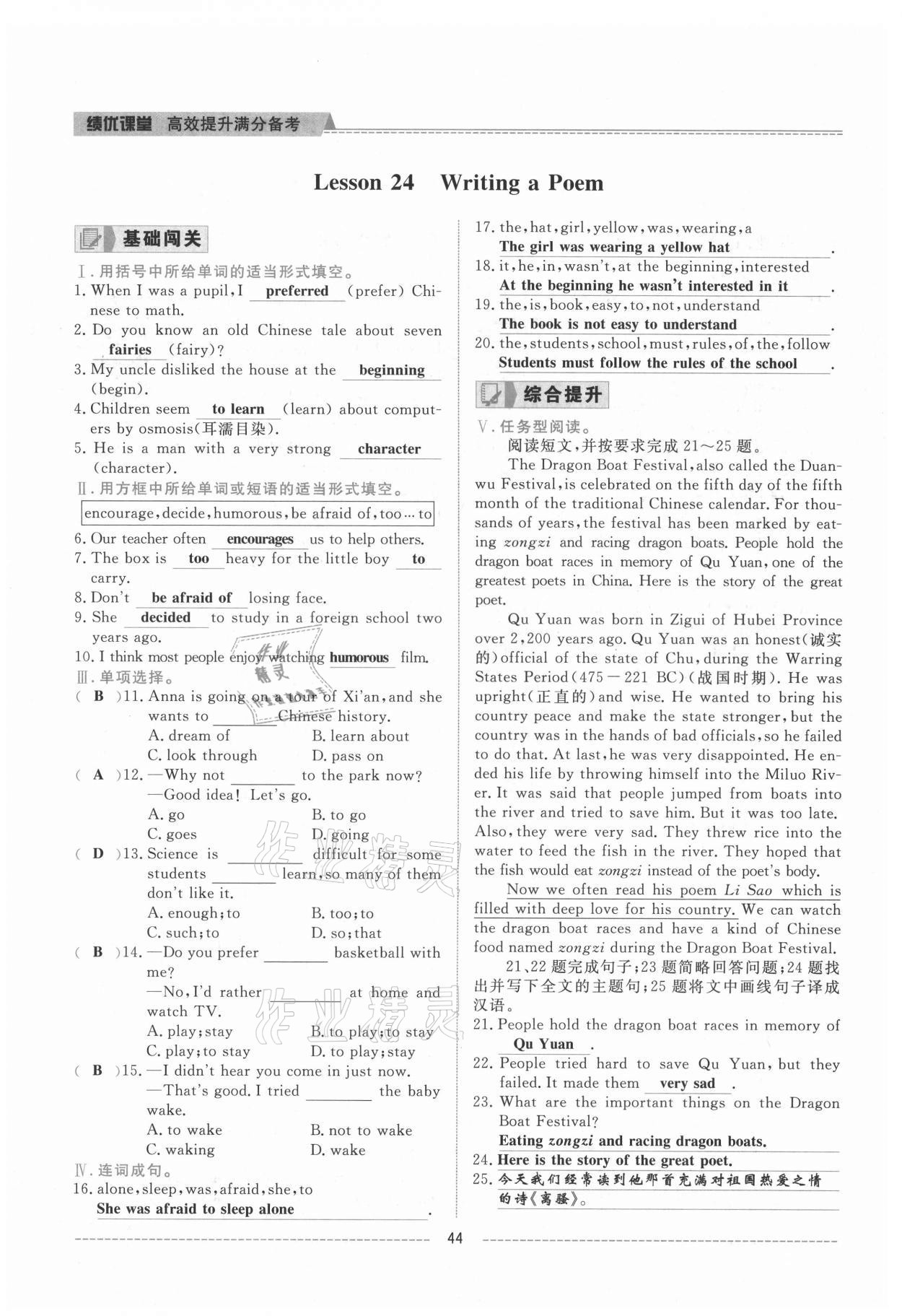 注:目前有些书本章节名称可能整理的还不是很完善,但都是按照顺序排列的,请同学们按照顺序仔细查找。练习册 2021年绩优课堂高效提升满分备考九年级英语冀教版河北专版 答案主要是用来给同学们做完题方便对答案用的,请勿直接抄袭。