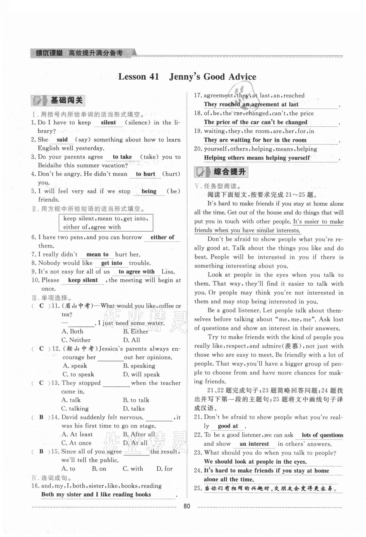 注:目前有些书本章节名称可能整理的还不是很完善,但都是按照顺序排列的,请同学们按照顺序仔细查找。练习册 2021年绩优课堂高效提升满分备考九年级英语冀教版河北专版 答案主要是用来给同学们做完题方便对答案用的,请勿直接抄袭。