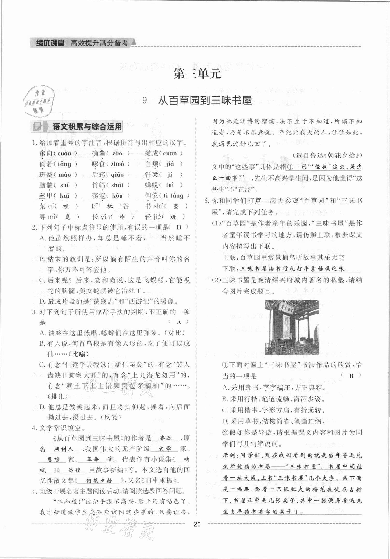 注:目前有些书本章节名称可能整理的还不是很完善,但都是按照顺序排列的,请同学们按照顺序仔细查找。练习册 2021年绩优课堂高效提升满分备考七年级语文上册人教版 答案主要是用来给同学们做完题方便对答案用的,请勿直接抄袭。