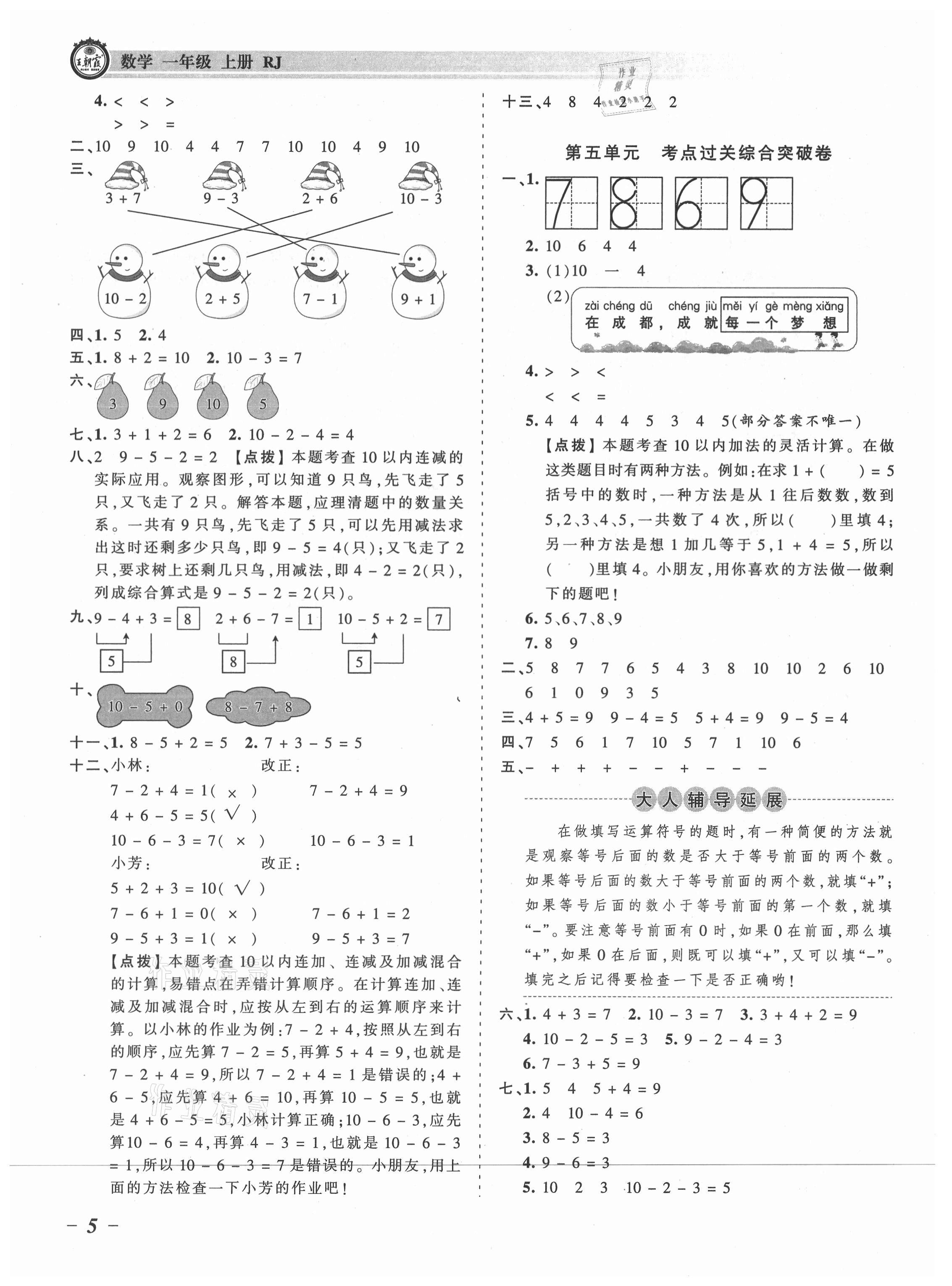 2021年王朝霞考点梳理时习卷一年级数学上册人教版