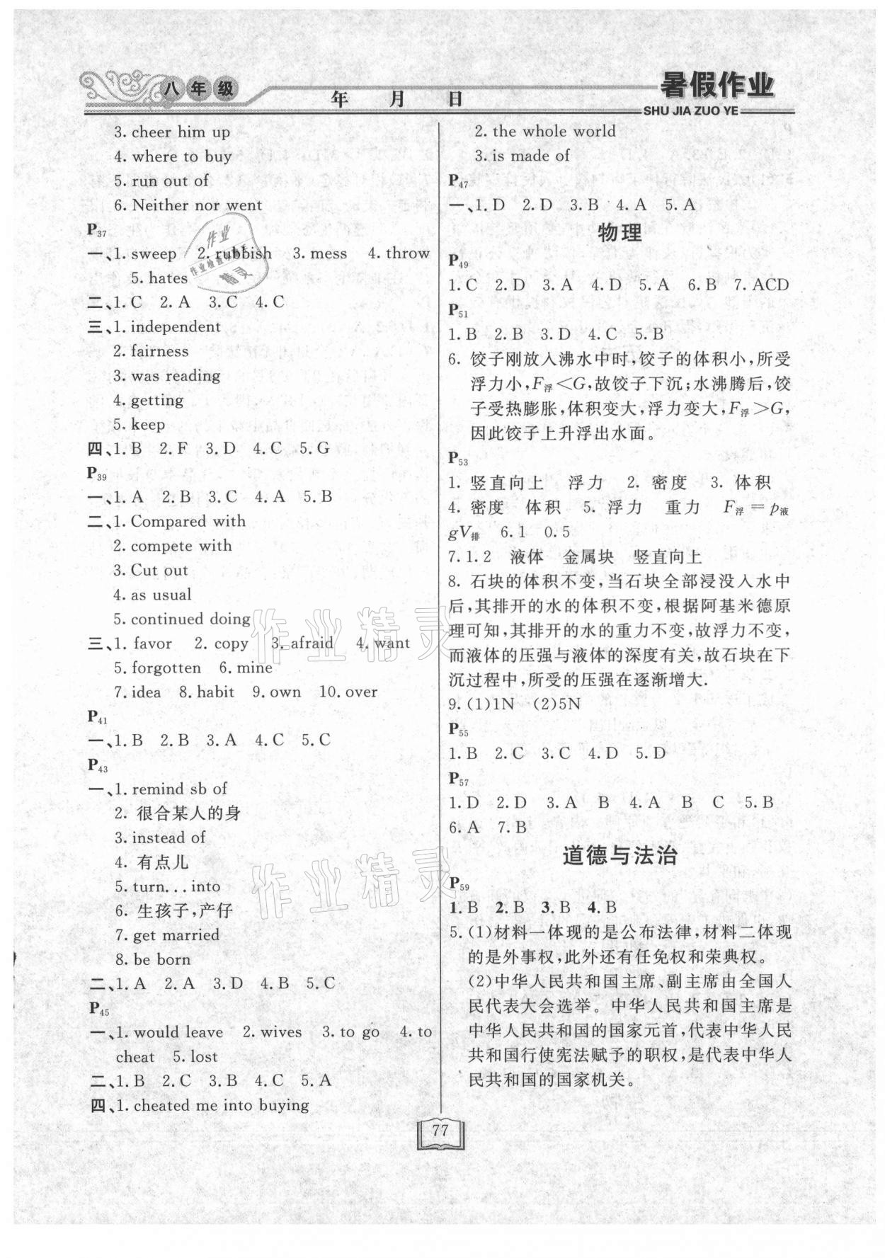 注:目前有些书本章节名称可能整理的还不是很完善,但都是按照顺序排列的,请同学们按照顺序仔细查找。练习册 2021年暑假作业快乐假期八年级延边人民出版社 答案主要是用来给同学们做完题方便对答案用的,请勿直接抄袭。