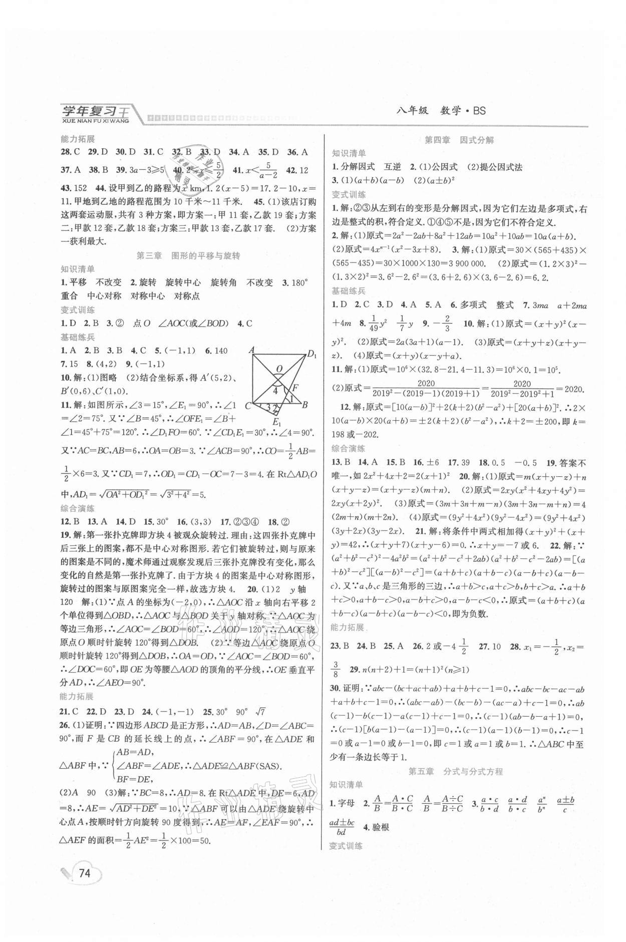 2021年浩鼎文化学年复习王八年级数学北师大版