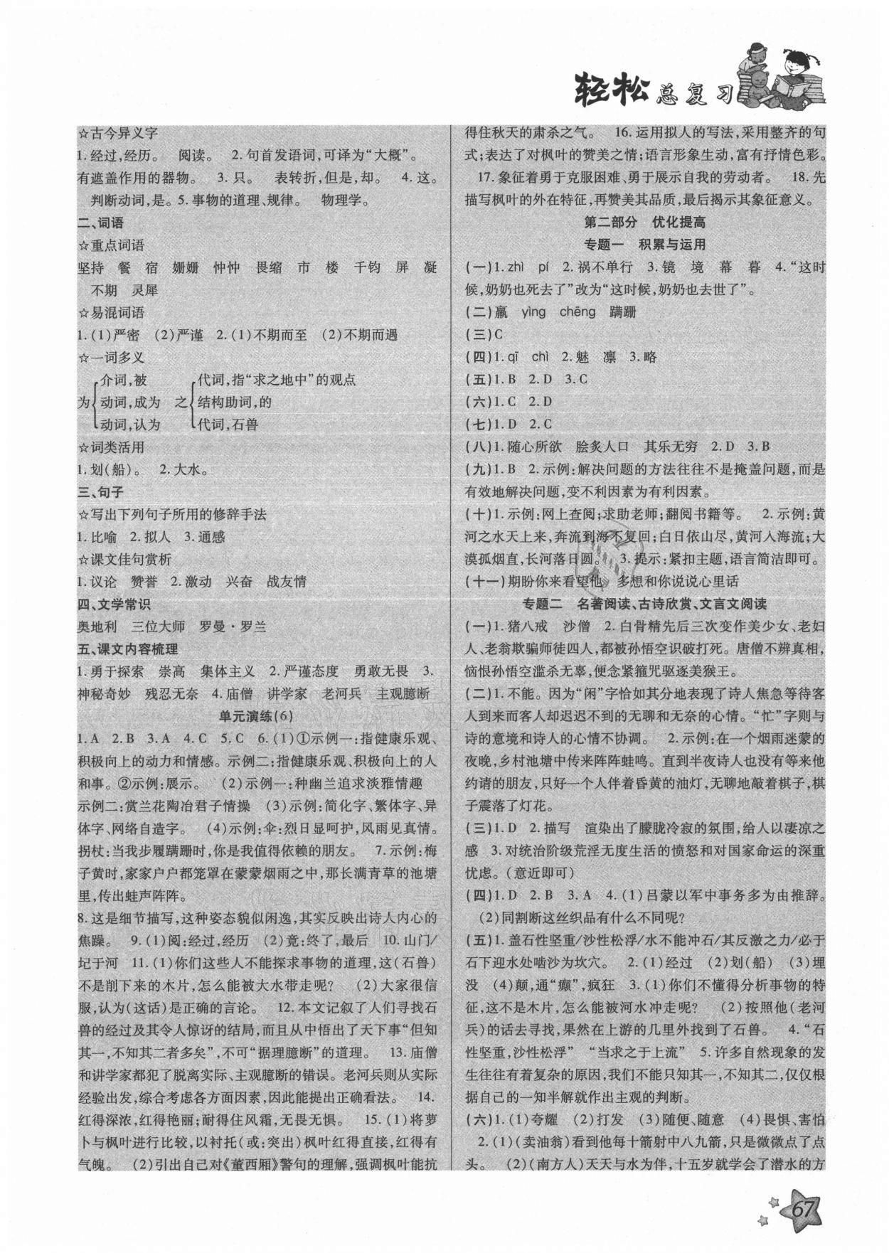 注:目前有些书本章节名称可能整理的还不是很完善,但都是按照顺序排列的,请同学们按照顺序仔细查找。练习册 2021年轻松总复习暑假作业七年级语文 答案主要是用来给同学们做完题方便对答案用的,请勿直接抄袭。