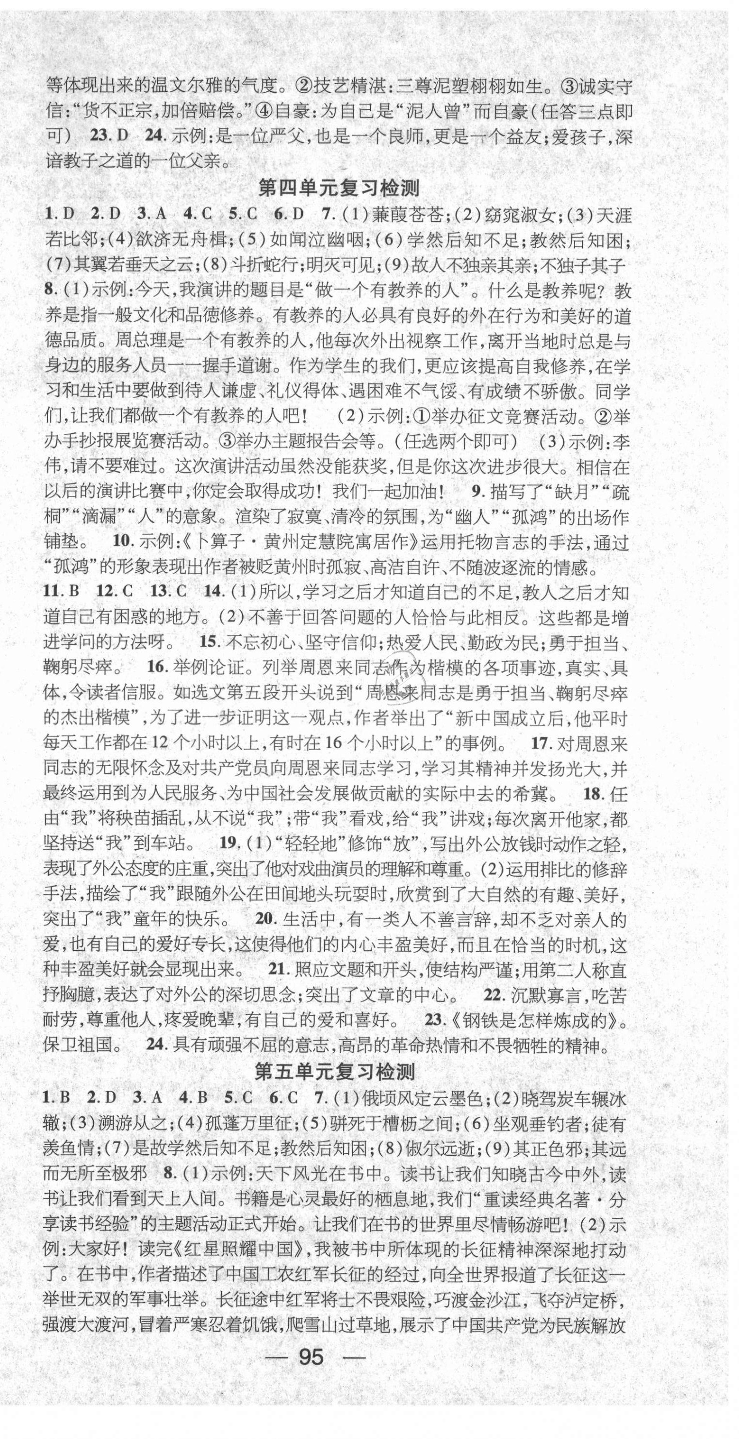 2021年鸿鹄志期末冲刺王暑假作业八年级语文人教版