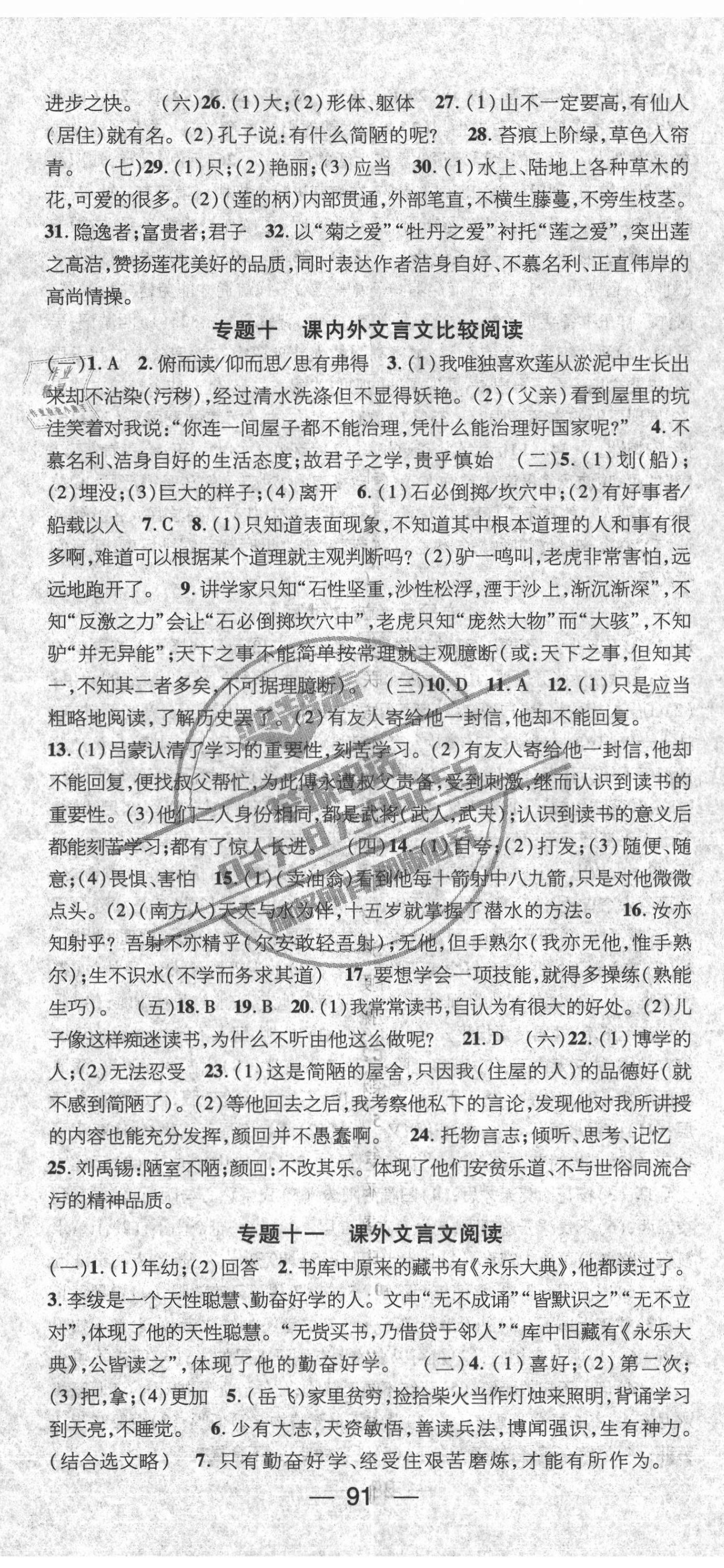 2021年鸿鹄志期末冲刺王暑假作业七年级语文人教版