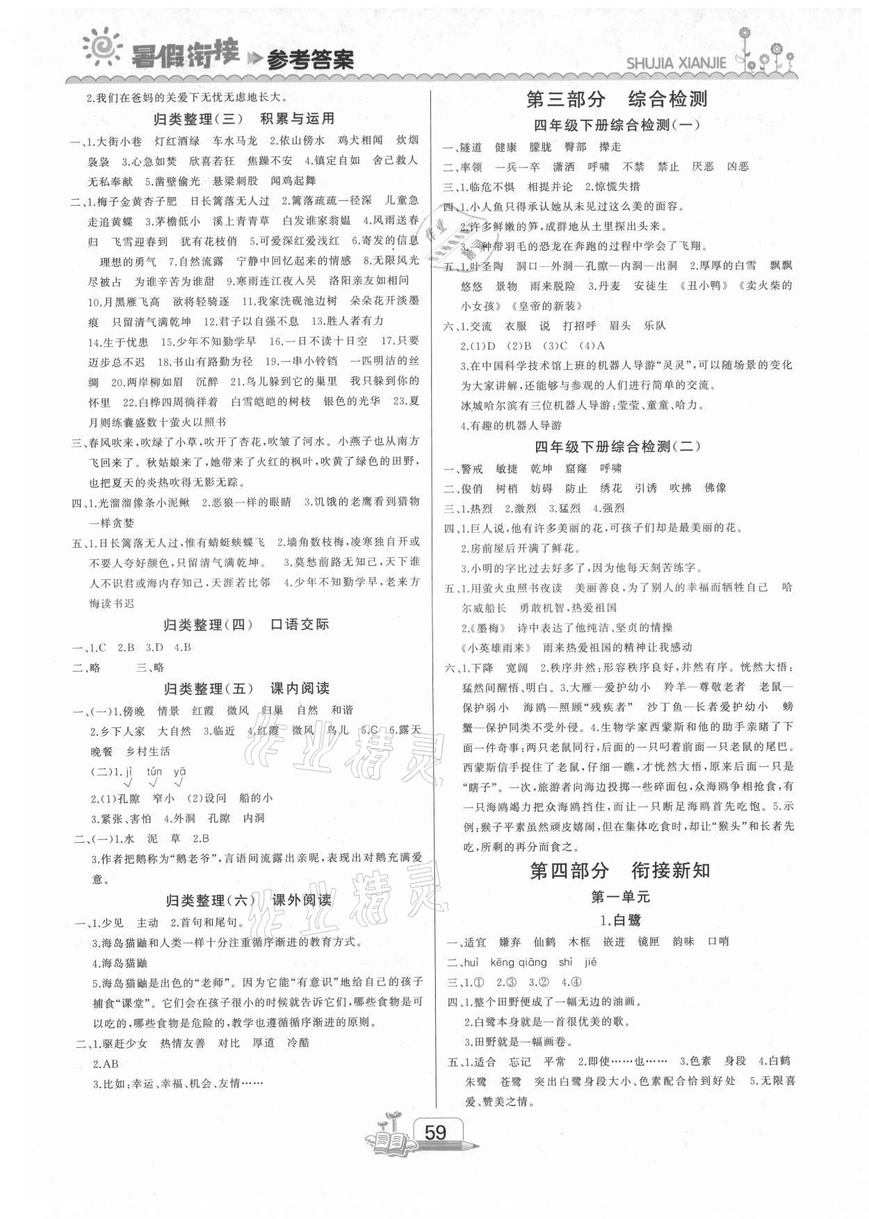 注:目前有些书本章节名称可能整理的还不是很完善,但都是按照顺序排列的,请同学们按照顺序仔细查找。练习册 2021年快乐假期吉林出版集团四年级语文人教版 答案主要是用来给同学们做完题方便对答案用的,请勿直接抄袭。