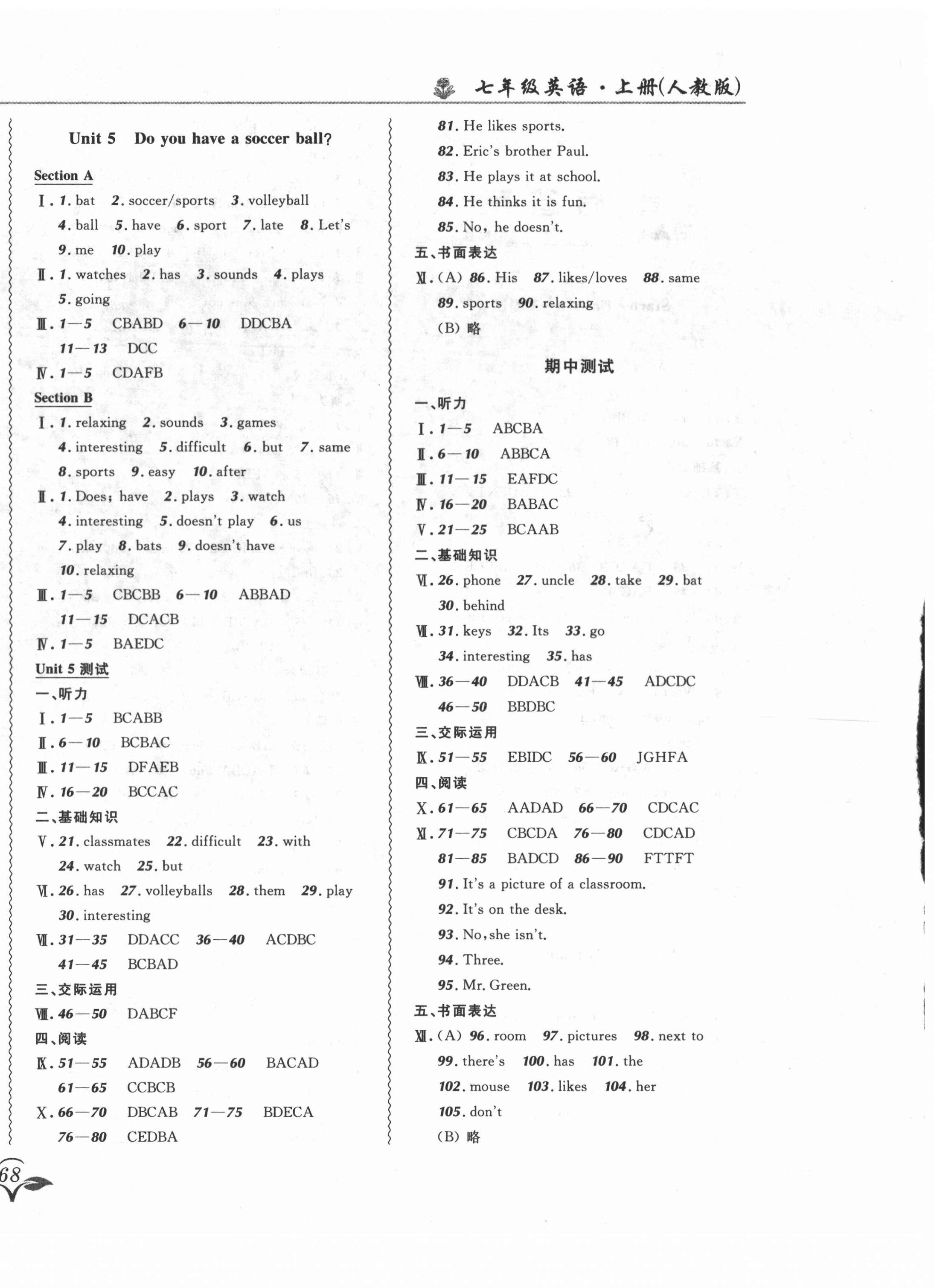注:目前有些书本章节名称可能整理的还不是很完善,但都是按照顺序排列的,请同学们按照顺序仔细查找。练习册 2021年北大绿卡课课大考卷七年级英语上册人教版长春专版 答案主要是用来给同学们做完题方便对答案用的,请勿直接抄袭。