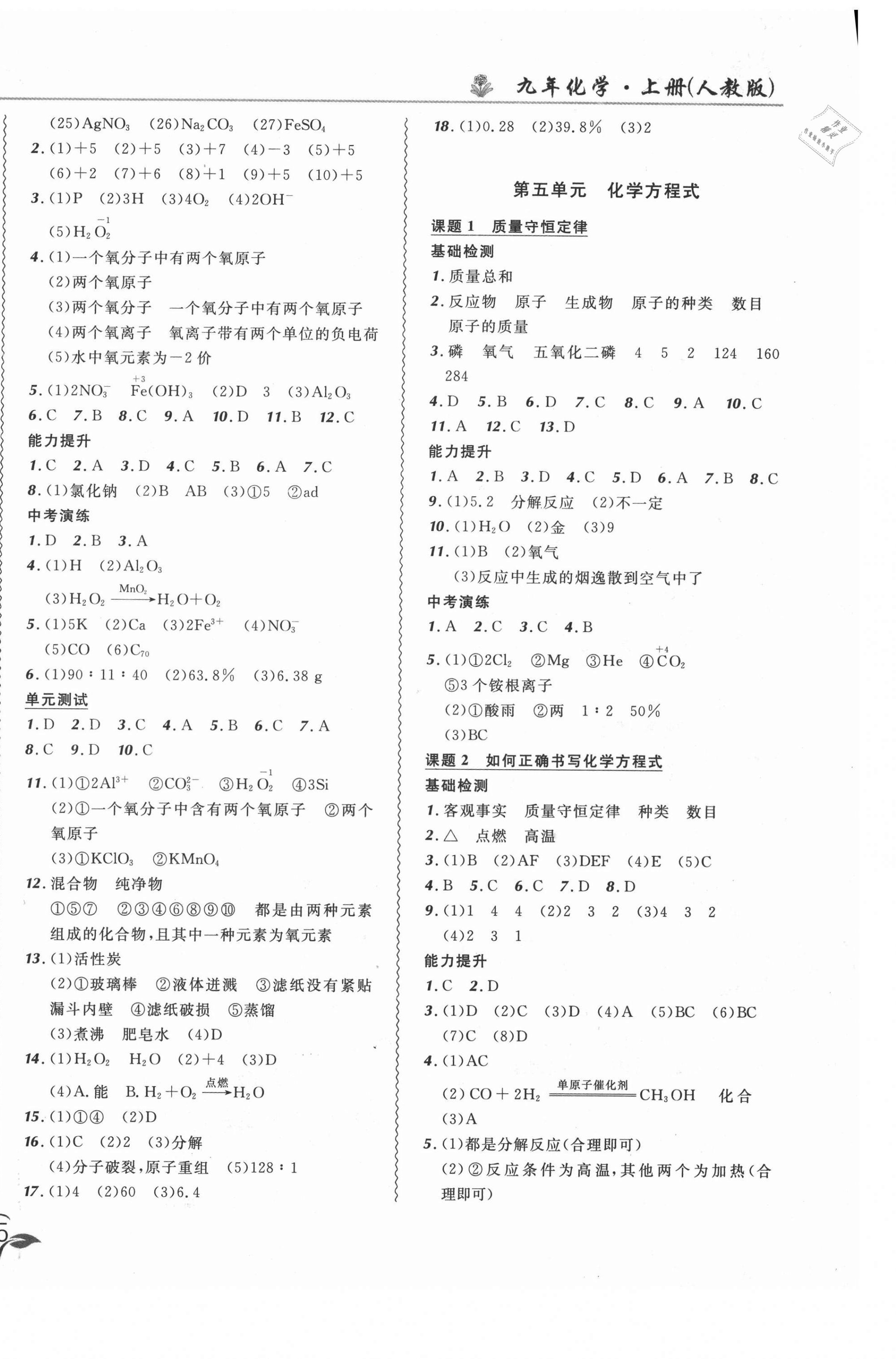注:目前有些书本章节名称可能整理的还不是很完善,但都是按照顺序排列的,请同学们按照顺序仔细查找。练习册 2021年北大绿卡课课大考卷九年级化学上册人教版长春专版 答案主要是用来给同学们做完题方便对答案用的,请勿直接抄袭。