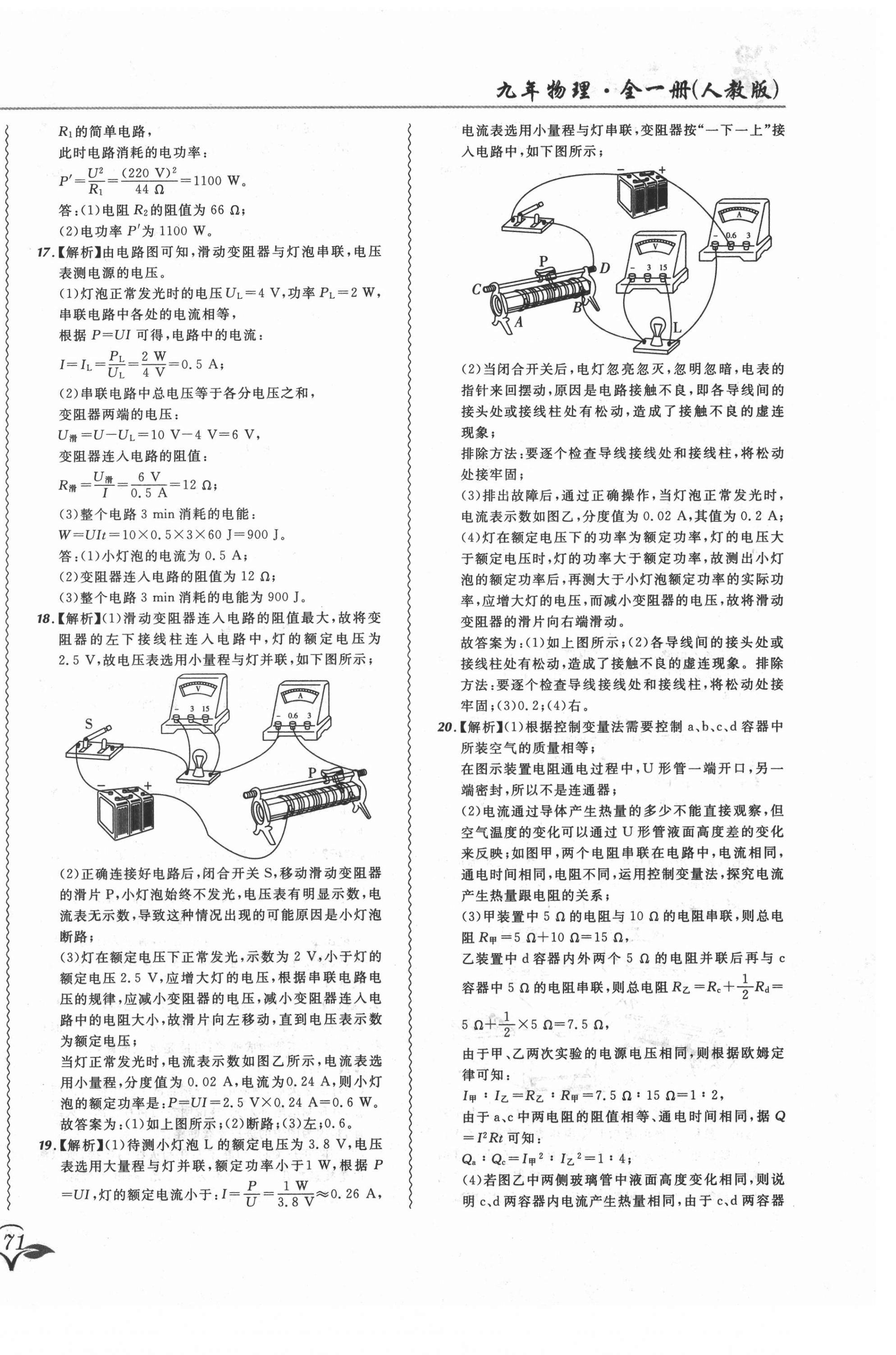 注:目前有些书本章节名称可能整理的还不是很完善,但都是按照顺序排列的,请同学们按照顺序仔细查找。练习册 2021年北大绿卡课课大考卷九年级物理全一册人教版长春专版 答案主要是用来给同学们做完题方便对答案用的,请勿直接抄袭。