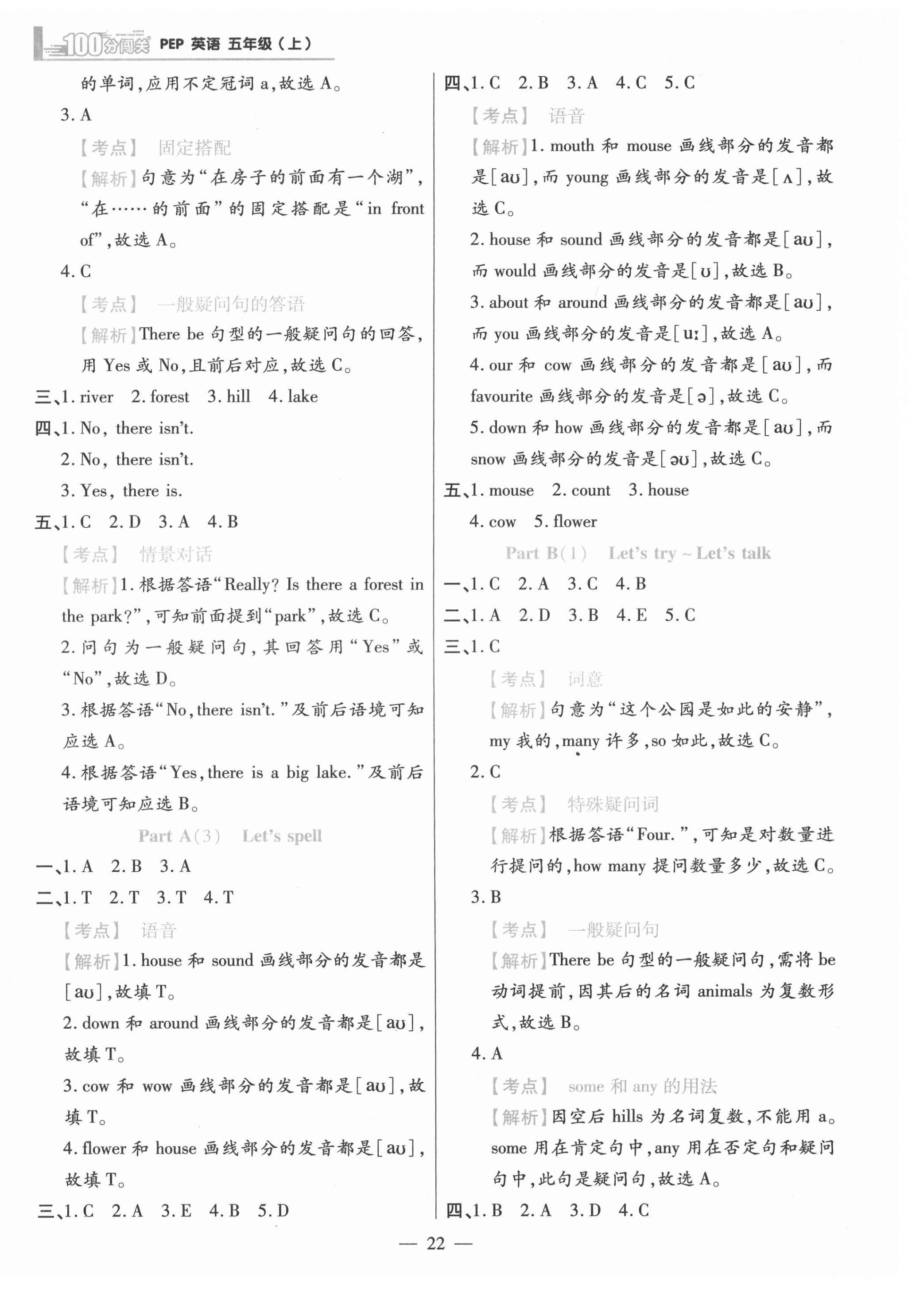 《2021年100分闯关同步练习册五年级英语上册人教版》