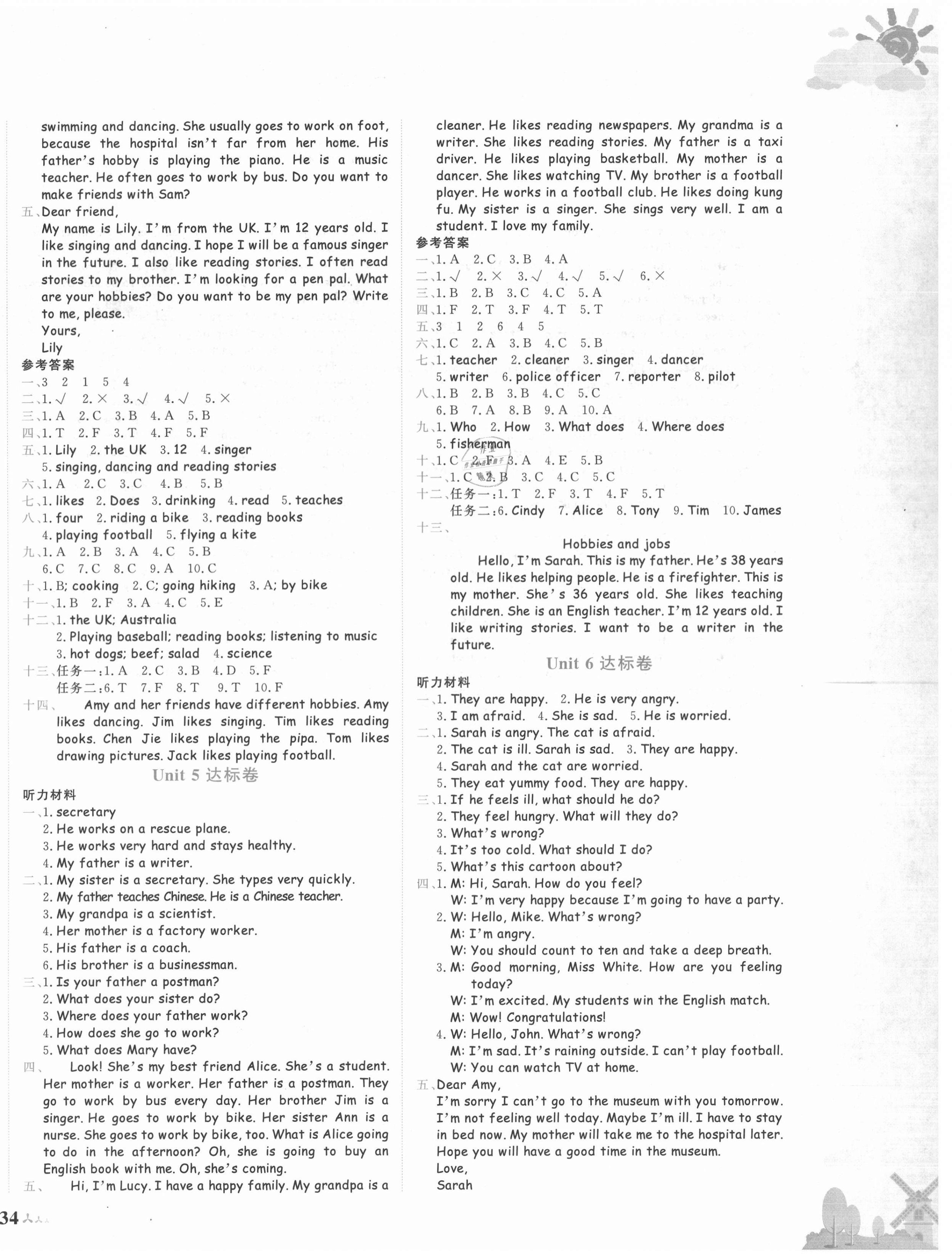 注:目前有些书本章节名称可能整理的还不是很完善,但都是按照顺序排列的,请同学们按照顺序仔细查找。练习册 2021年黄冈小状元达标卷六年级英语上册人教版 答案主要是用来给同学们做完题方便对答案用的,请勿直接抄袭。