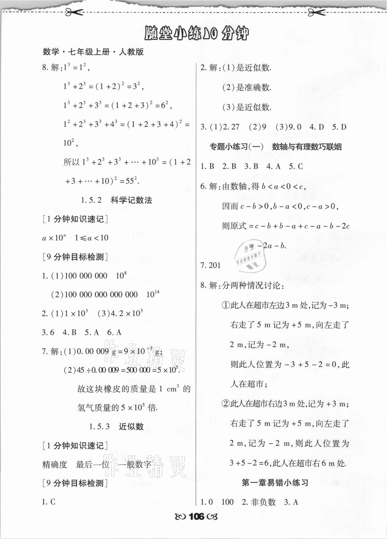 注:目前有些书本章节名称可能整理的还不是很完善,但都是按照顺序排列的,请同学们按照顺序仔细查找。练习册 2021年千里马随堂小练10分钟七年级数学上册人教版 答案主要是用来给同学们做完题方便对答案用的,请勿直接抄袭。